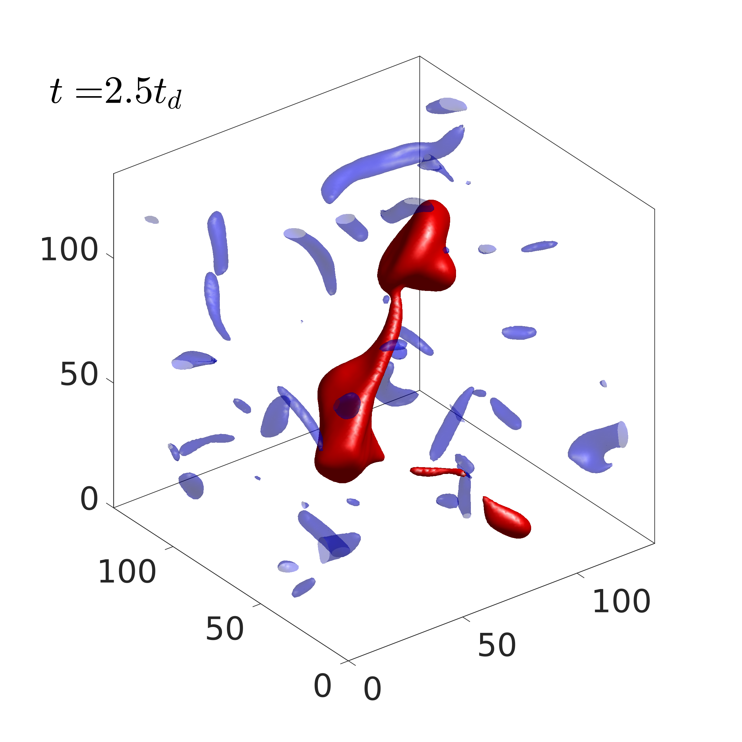 Um diese Frage zu beantworten, ist ein tieferes Verständnis des Aufbrechens selbst erforderlich: Zu welchem Zeitpunkt zerfällt ein Tropfen oder eine Blase tatsächlich in kleinere Teile? Erreicht der Zerfall schließlich einen Endzustand, in dem die Tropfen so klein sind, dass sie sich nicht mehr weiter aufspalten? Bislang wurden diese Fragen vor allem experimentell untersucht, aber die Verfolgung von Tropfen in einer turbulenten Umgebung ist äußerst schwierig. Außerdem ist eine große Menge an Messdaten erforderlich, um statistisch zuverlässige Aussagen über den Aufspaltungsprozess zu treffen. Erschwerend kommt hinzu, dass bei den Experimenten viele Parameter berücksichtigt werden müssen, wie die Art der gewählten Flüssigkeit und ihre Eigenschaften (z. B. Dichte und Oberflächenspannung) oder die Tropfengröße und der Turbulenzgrad der Strömung. Infolgedessen liegen nur wenige Daten über das Aufbrechen von Tropfen und Blasen in turbulenten Strömungen vor, was detailliertere Erkenntnisse des Phänomens behindert und Vorhersagen erschwert.