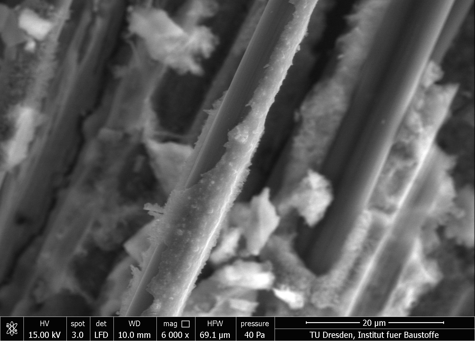 Das Institut für Baustoffe und das Institut für Statik und Dynamik der TU Dresden haben in Zusammenarbeit mit der Shanghai Jiao Tong Universität in China erforscht, mit welchen Methoden eine stabilere Verbindung möglich ist. Dazu gehören sowohl technologische als auch physikalisch-chemische Ansätze, die eine verbesserte Faser-Matrix-Wechselwirkung bei verschiedenen Temperaturen erzielen können. Dabei wurden sowohl textiltechnische Ansätze, wie beispielsweise geeignete Beschichtungs- oder Imprägnierungsmaterialien als vielversprechend identifiziert, als auch physikalisch-chemische Ansätze mittels Plasmabehandlungen oder elektrochemischer Abscheidung.