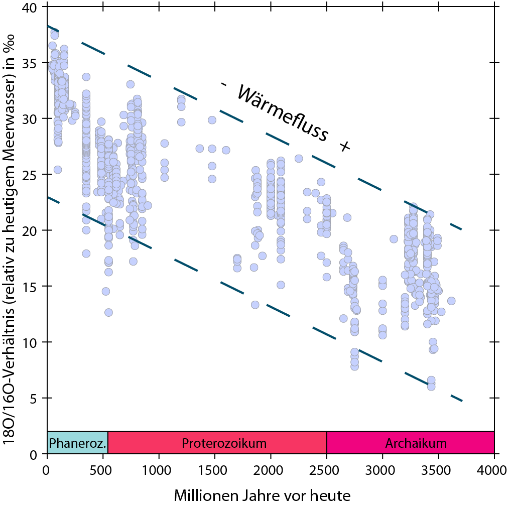 Co-autor Patrick Frings vom GFZ Potsdam fügt hinzu: „Ich denke, diese Arbeit wird in den kommenden Jahren die Tür zu einigen aufregenden neuen Entwicklungen öffnen, denn unsere Erkenntnis über den Wärmefluss-Effekt ermöglicht akkurate Rekonstruktionen von Meerwassertemperaturen in tiefer geologischer Zeit. Darüber hinaus werden wir die thermische Struktur und tektonische Geschichte alter Sedimentbecken entschlüsseln können.“ Der berechnete Effekt des Wärmeflusses für Sauerstoffisotope in Cherts bedeutet auch, dass die leichten Archaischen Cherts für ein gemäßigtes bis warmes Klima auf der frühen Erde sprechen – heiße Archaische Ozeane scheinen sehr unwahrscheinlich. Diese Schlussfolgerung ist zentral für das Verständnis über die Entwicklung von Leben auf der jungen Erde.