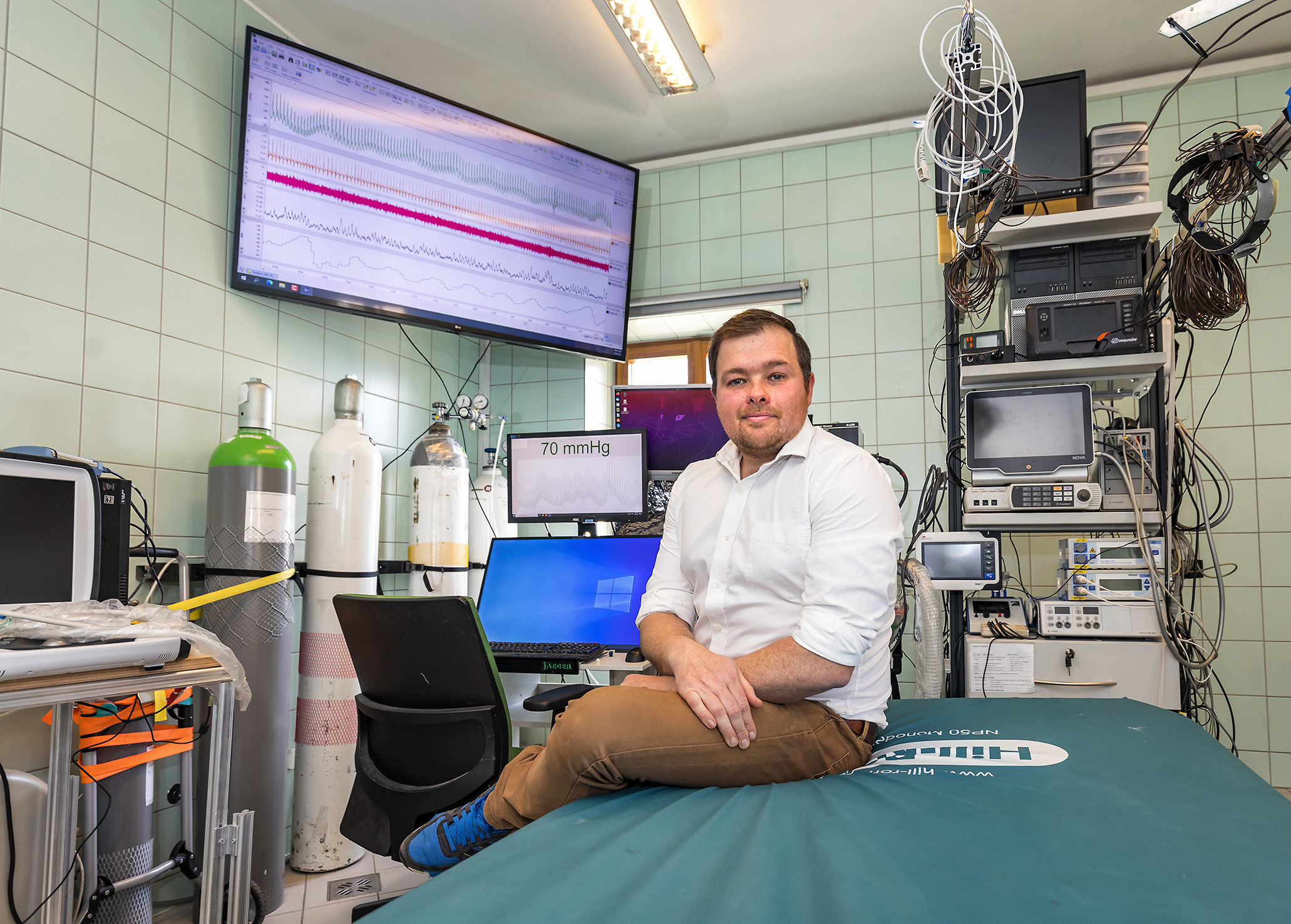 Da es wichtig ist, einen Blutdruckanstieg in der Kälte zu verhindern, sollte untersucht werden, ob der Anstieg des Gefäßwiderstandes (d.h. die Vasokonstriktion) auf eine Veränderung des Blutflusses in der Skelettmuskulatur oder nur in der Haut zurückzuführen ist. In einem Labor am Institut für Sportwissenschaft der Universität Innsbruck kühlten die Forscher*innen die Hauttemperatur von 34 Proband*innen mit zehn Grad kalter Luft von normalen 32 bis 34 Grad auf etwa 27 Grad ab – einmal wurde der gesamte Körper und einmal nur das Gesicht gekühlt.