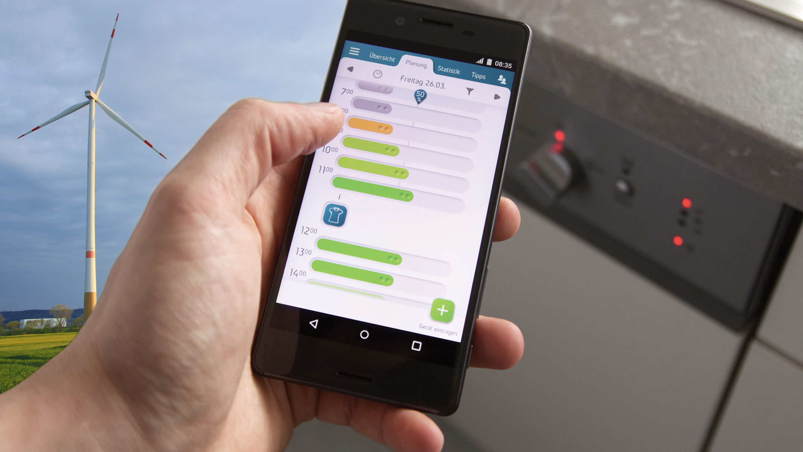 Der Anteil erneuerbarer Energien im Stromnetz ist stark von Wetter und Tageszeit abhängig. Die App PeakPick ist ein Saisonkalender für grünen Strom, der hilft, den Verbrauch an die Erzeugung durch Wind- und Solaranlagen anzupassen. In der Industrie wird dies bereits mit sogenannter „Lastverschiebung“ praktiziert. PeakPick aktiviert dieses Potential auch in Privathaushalten und ermöglicht einen Einstieg in den flexiblen Stromverbrauch. „Mittags steht die Sonne im Zenit, da wird am meisten Solarstrom erzeugt“, sagt Sascha Greilinger. „Bei schönem Wetter mittags kochen, abends kalt essen und CO2 sparen!“ Oder die Waschmaschine dann laufen lassen, wenn der Wind weht. Indem das Einschalten von Geräten in einen Zeitraum mit hohem Anteil an regenerativer Erzeugung verschoben wird, kann jeder einen wertvollen Beitrag zur Energiewende leisten.