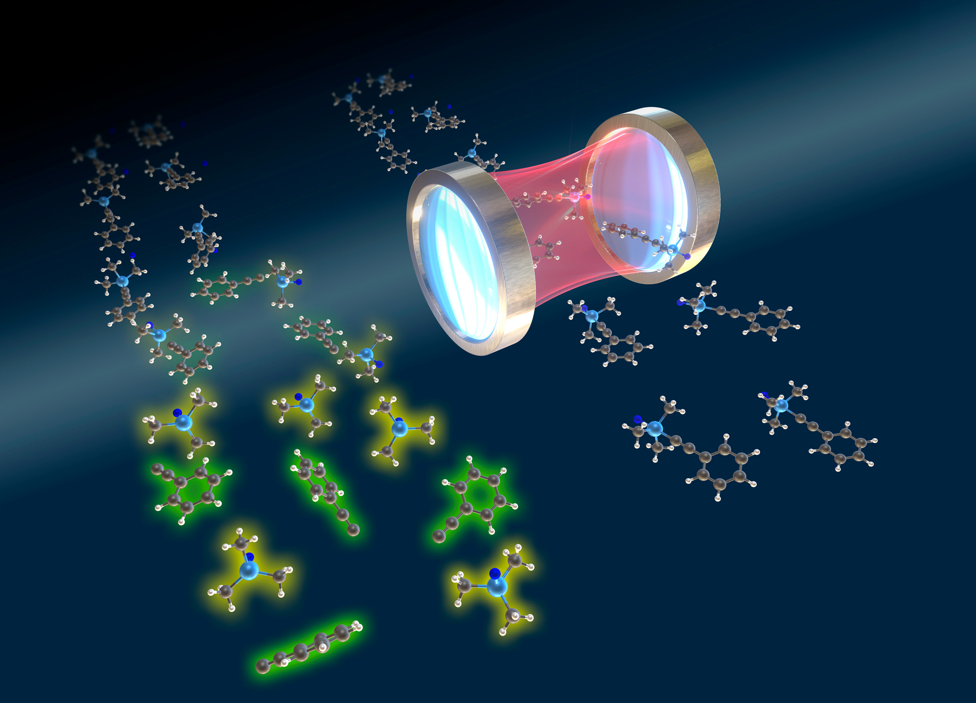 Das Team entdeckte, dass die Bedingungen innerhalb des optischen Hohlraums die Energie beeinflussen, die die Atome um die Einzelbindungen des Moleküls schwingen lässt, welche wiederum für die chemische Reaktion entscheidend sind.