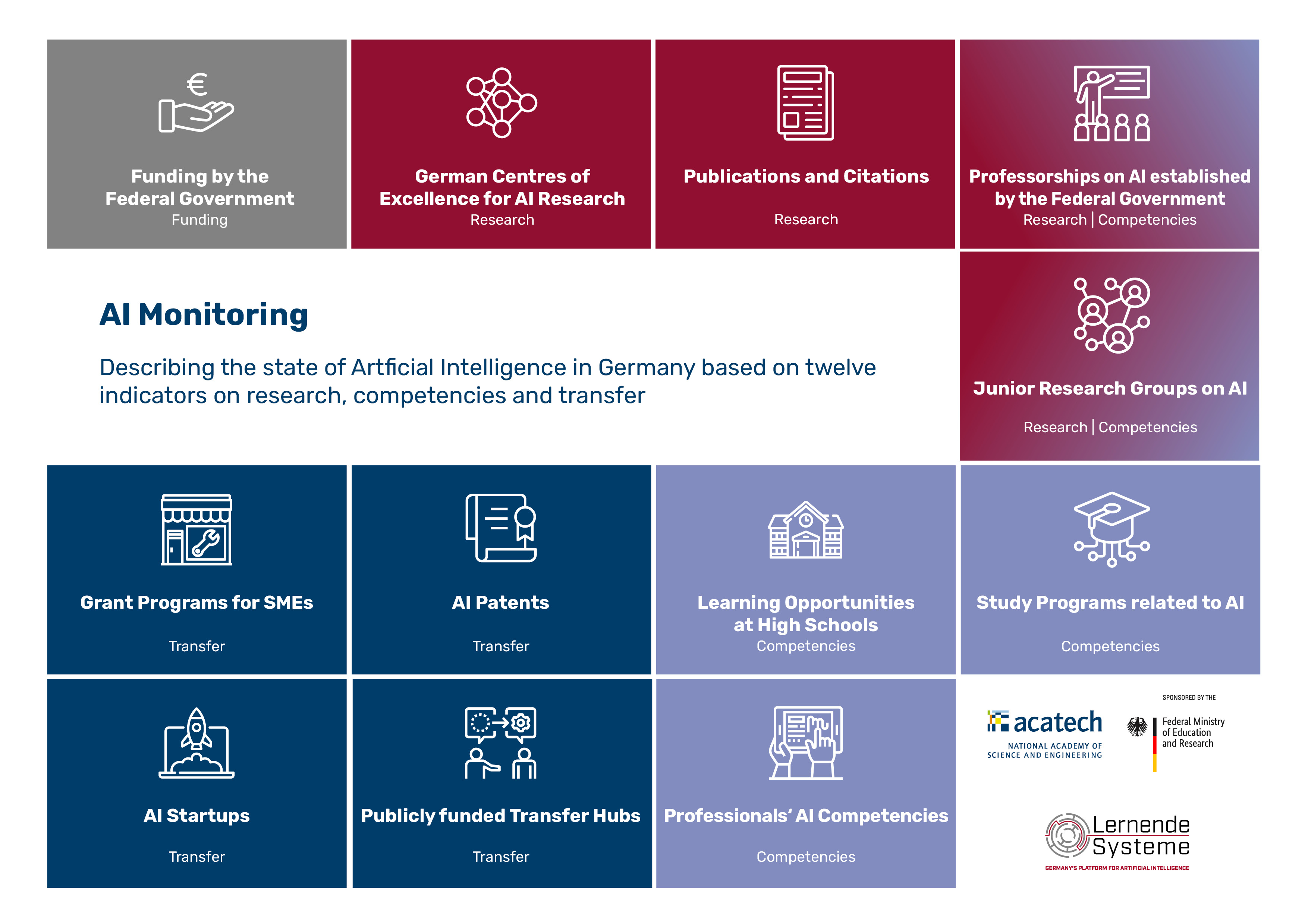 The AI monitoring will be updated regularly in the future and is available at https://www.plattform-lernende-systeme.de/ai-monitoring.html.