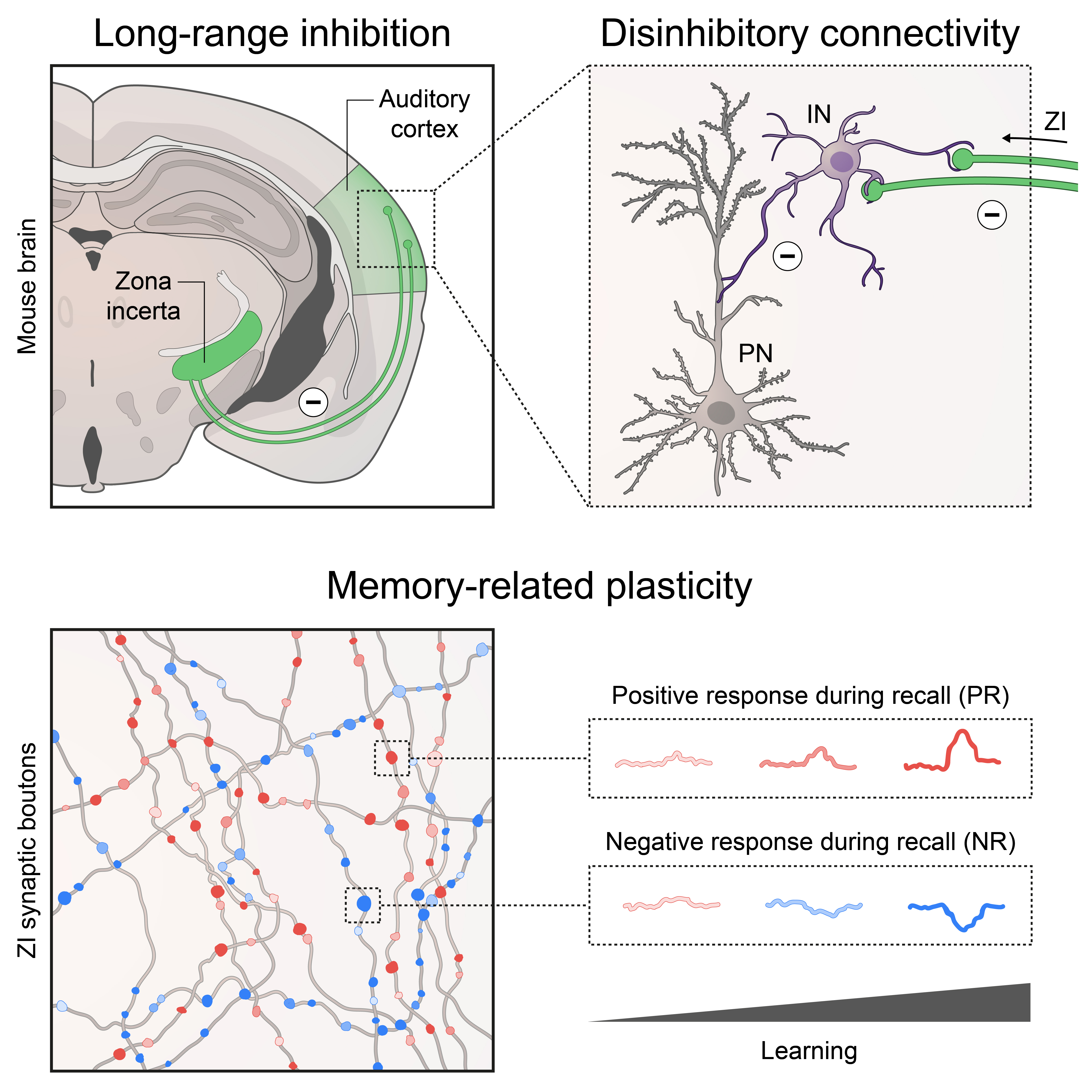 This work provides the first functional dissection of how long-range inhibition shapes the computations of neocortex. The signals identified in this study are likely critical not only for memory, but for a number of additional brain functions, like attention. Moreover, the zona incerta is among the very few regions standardly targeted for deep brain stimulation in human Parkinson’s patients, opening up an intriguing possibility for translational work in the future. Ultimately, this study will hopefully also inspire other researchers to keep exploring the role of long-range inhibition in regulating neocortical function, both from the zona incerta and from additional, yet to be identified sources.