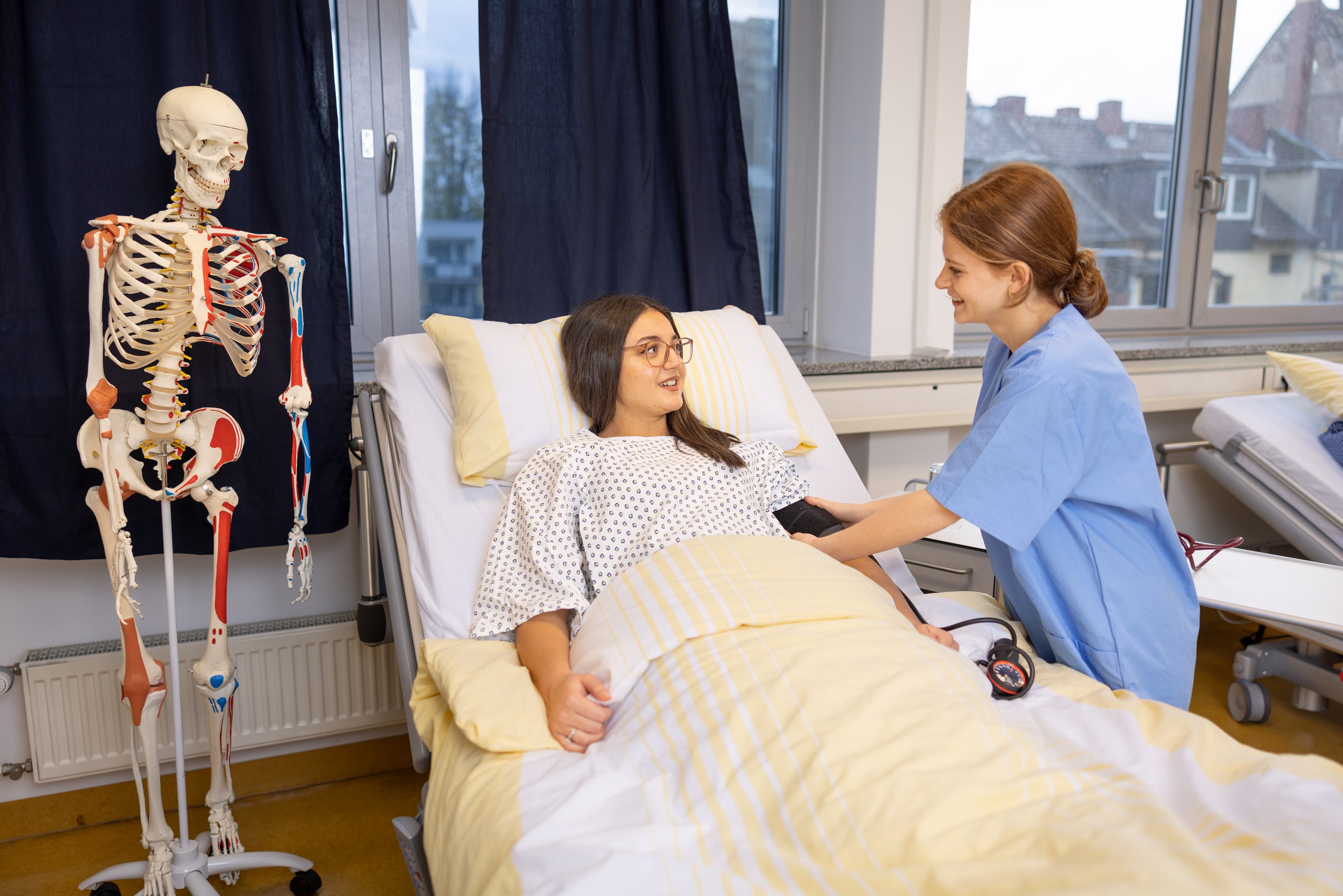 Der duale Studiengang Angewandte Pflegewissenschaft (B.Sc.) ist im Wintersemester 2022/23 an der Frankfurt University of Applied Sciences (Frankfurt UAS) mit der zweiten Kohorte in die nächste Runde gestartet. Dual bedeutet, dass der Studiengang neben dem akademischen Abschluss auch den Erwerb der Berufszulassung als Pflegefachfrau/als Pflegefachmann ermöglicht. Somit begegnet die Hochschule einer gesellschaftlich hochrelevanten Herausforderung, denn Pflege kann für Menschen jeden Alters und in den unterschiedlichsten Lebenslagen relevant sein. Ob jung oder alt, ob in der Akutversorgung im Krankenhaus, in der stationären Versorgung in Altenpflegeeinrichtungen oder im häuslichen Umfeld: Alle Menschen wünschen sich eine pflegerisch gute Versorgung unter Wahrung ihrer individuellen Bedürfnisse und Autonomie. Da der Anteil pflegebedürftiger Menschen hierzulande kontinuierlich steigt und auch die Pflegesituationen komplexer werden, stehen Pflegeberufe vor großen Aufgaben. „Neben dem bereits deutlich spürbaren Fachkräftemangel sind neue pflegerische Kompetenzen auf hohem Niveau erforderlich. Somit ist nicht nur Quantität, sondern vor allem Qualität in der pflegerischen Versorgung gefragt!“, betont Studiengangsleiterin Prof. Dr. Julia Lademann, Professorin für Pflege- und Gesundheitswissenschaften. Die Form des dualen Pflege-Studiums sei hier die passende Antwort, in Hessen aber immer noch eine Seltenheit. Ein vergleichbares Angebot wird nur von der Hochschule Fulda vorgehalten, mit der hierzu eine sehr enge Zusammenarbeit besteht. Mit dem Universitätsklinikum Frankfurt habe die Frankfurt UAS einen großen Partner im Rhein-Main-Gebiet dazu gewonnen und könne so Studienplatzkapazitäten sowie innovative Formen der Lernortkooperation ausbauen. Auch mit weiteren Einrichtungen des Gesundheitswesens, die an der Akademisierung sowie Professionalisierung des pflegerischen Berufes interessiert sind, wurden neue Kooperationen geschlossen.