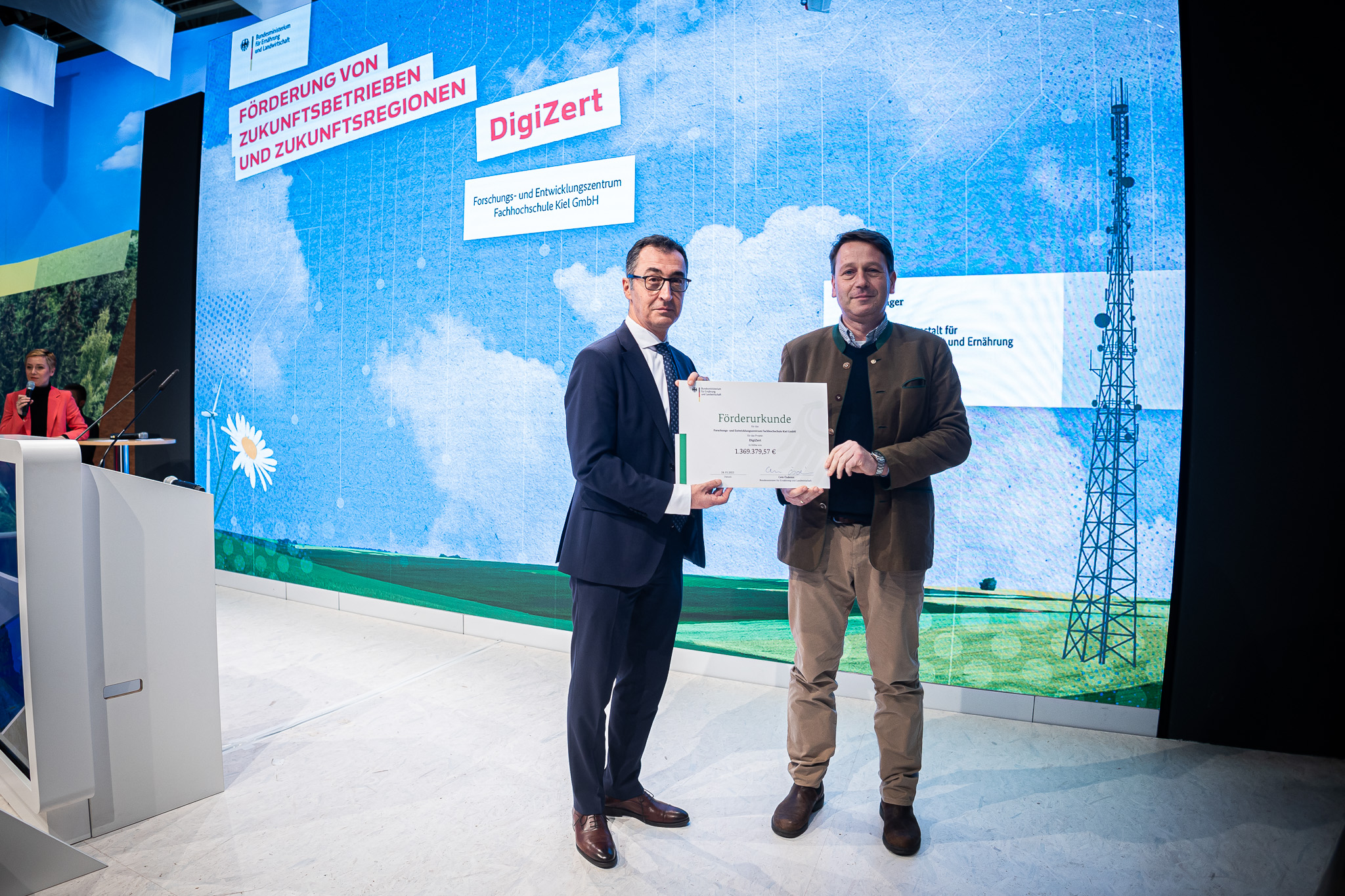 Das Bundesministerium für Ernährung und Landwirtschaft (BMEL) fördert das Projekt DigiZert an der FH Kiel als ZUKUNFTSREGION mit 1,4 Mio. Euro. Bundeslandwirtschaftsminister Cem Özdemir überreichte den Förderbescheid heute in Berlin. DigiZert steht für „Digitales Zertifikatssystem der Kartoffel-Wertschöpfungskette zur Dokumentation landwirtschaftlicher Klima- und Umweltschutzmaßnahmen“. Am Beispiel der Kartoffel wollen Experten des Fachbereichs Agrarwirtschaft aufwendige Dokumentationen des Anbauprozesses digitalisieren. So soll mehr Transparenz für Verbraucher*innen entstehen und Zertifizierungsverfahren vereinfacht werden. Das Projekt hat eine Laufzeit von drei Jahren.