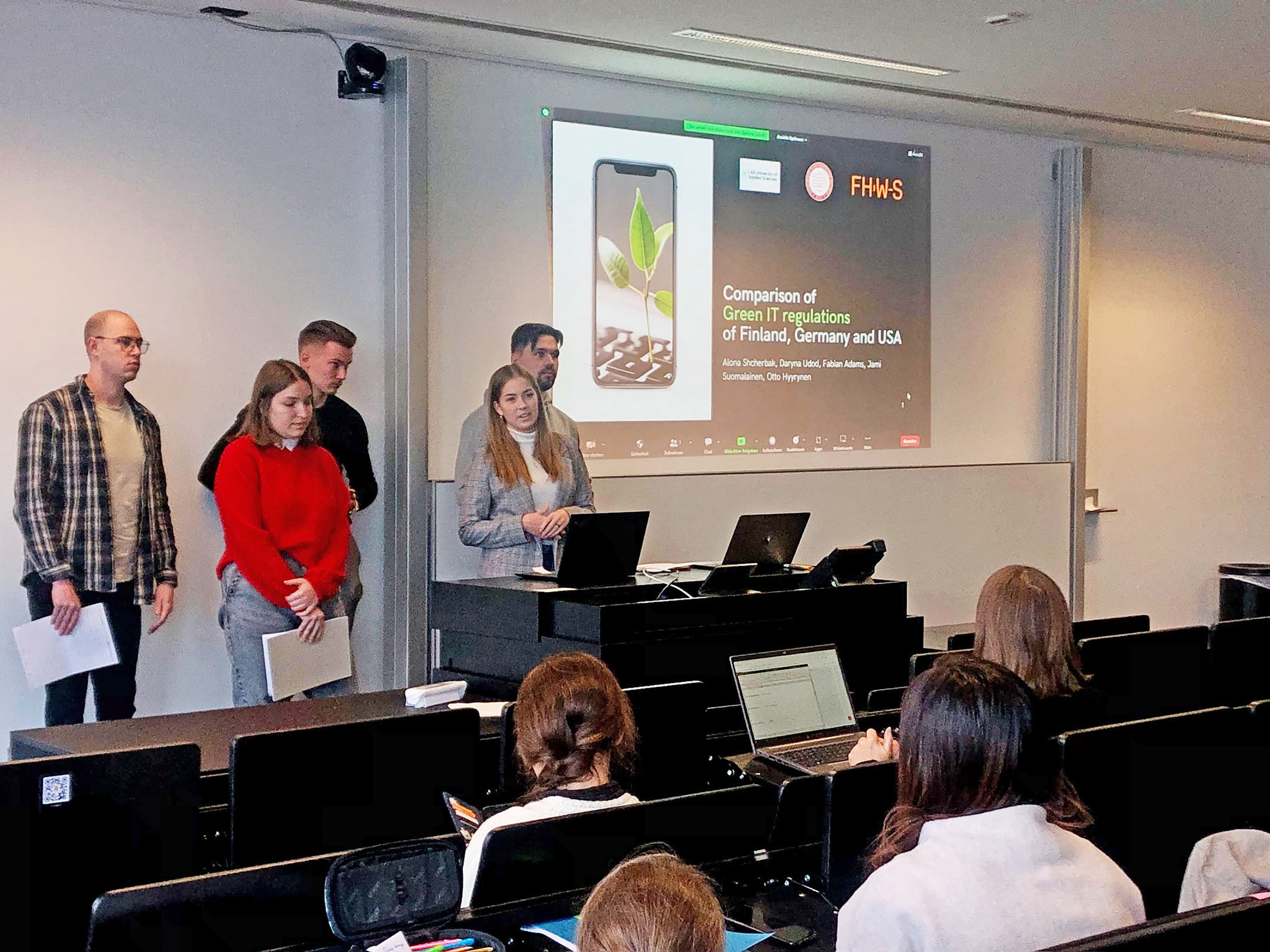 Nachhaltigkeit in der Digitalisierung: Mit diesem Thema haben sich Studierende hochschulübergreifend im Rahmen des Projektes „Mobility Goes Virtual" mit dem zweiten Modul „Green IT“ beschäftigt. Bei der Durchführung gab es neben der virtuellen Zusammenarbeit auch eine physische Mobilität. Gemeinsam mit zwei Partnerhochschulen der Technischen Hochschule Würzburg-Schweinfurt, Fakultät Informatik und Wirtschaftsinformatik, aus der Ukraine und Finnland haben sich 21 Studierende mit Professorinnen und Professoren der National Technical University "Kharkiv Polytechnic Instiute" (KhPI) in Kharkiv, Ukraine, und der LAB University of Applied Sciences, Finnland, im Wintersemester 2022/2023 mit Projekten der grünen Informationstechnologie auseinandergesetzt. Eigentlich sollte das Vorhaben schon im Sommersemester 2022 starten, doch die Planungen mussten aufgrund der aktuellen politischen Lage in der Ukraine verschoben werden. Das erste Projekt von „Mobility Goes Virtual“ im Wintersemester 2020/2021 mit einer Partnerhochschule aus Rumänien hatte neue Technologien zur Realisierung von Telepräsenz zum Inhalt.