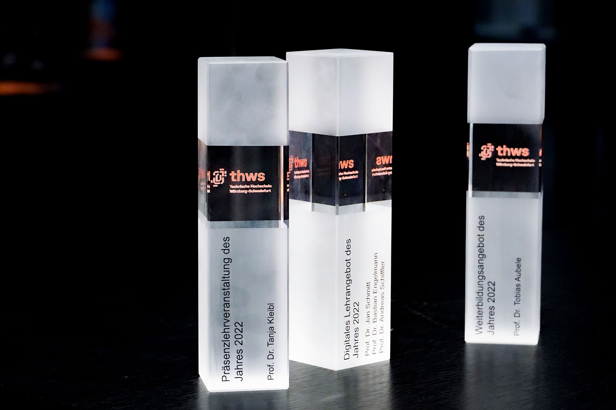 Die Technische Hochschule Würzburg-Schweinfurt hat im Rahmen des jährlichen „THWS-Talks” erstmals Lehrangebote mit einem Lehrpreis ausgezeichnet. In drei Kategorien wurden die Auszeichnungen vergeben: „Präsenzlehrveranstaltung des Jahres”, „Digitales Lehrangebot des Jahres” und „Weiterbildungsangebot des Jahres”.