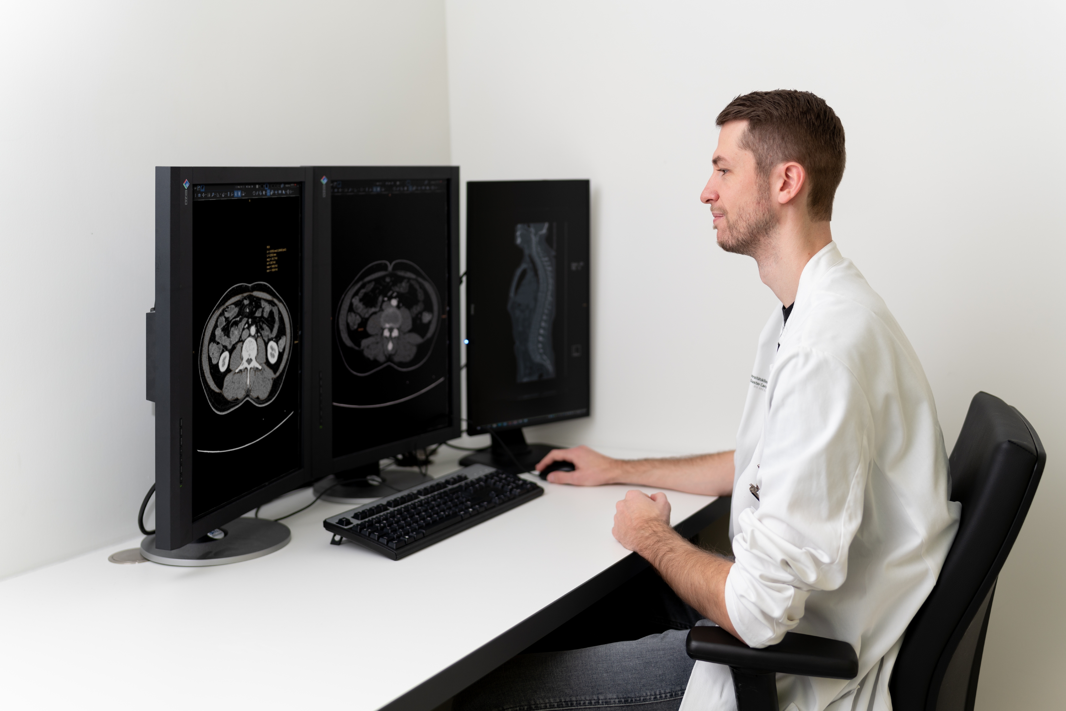 Anhand von CT-Bildern wird ein möglicher Rückgang der Skelettmuskulatur analysiert. © Uniklinikum Dresden/Kirsten Lassig