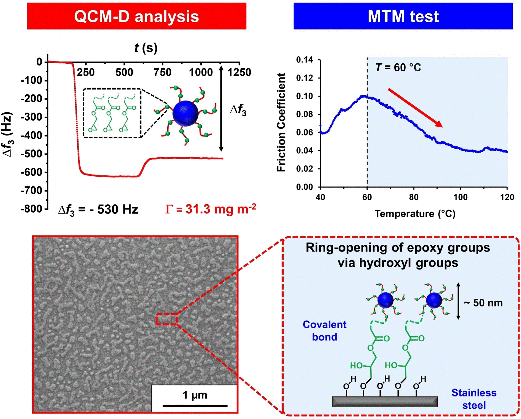 Wie das Team feststellte, kam es zu einer chemischen Reaktion der Epoxy-funktionalisierten Nanopartikel mit den Hydroxygruppen von Edelstahloberflächen, was dazu führte, dass die Nanopartikel festklebten. Ob diese chemische Adsorption zustande kam oder nicht, hing von der genauen Position der Epoxygruppen in den Nanopartikeln ab. „Zu unserer Überraschung brachte es keinen Vorteil, wenn wir eine weit höhere Anzahl von Epoxygruppen in den Kern der Nanopartikel einführten,“ erklärt Armes.