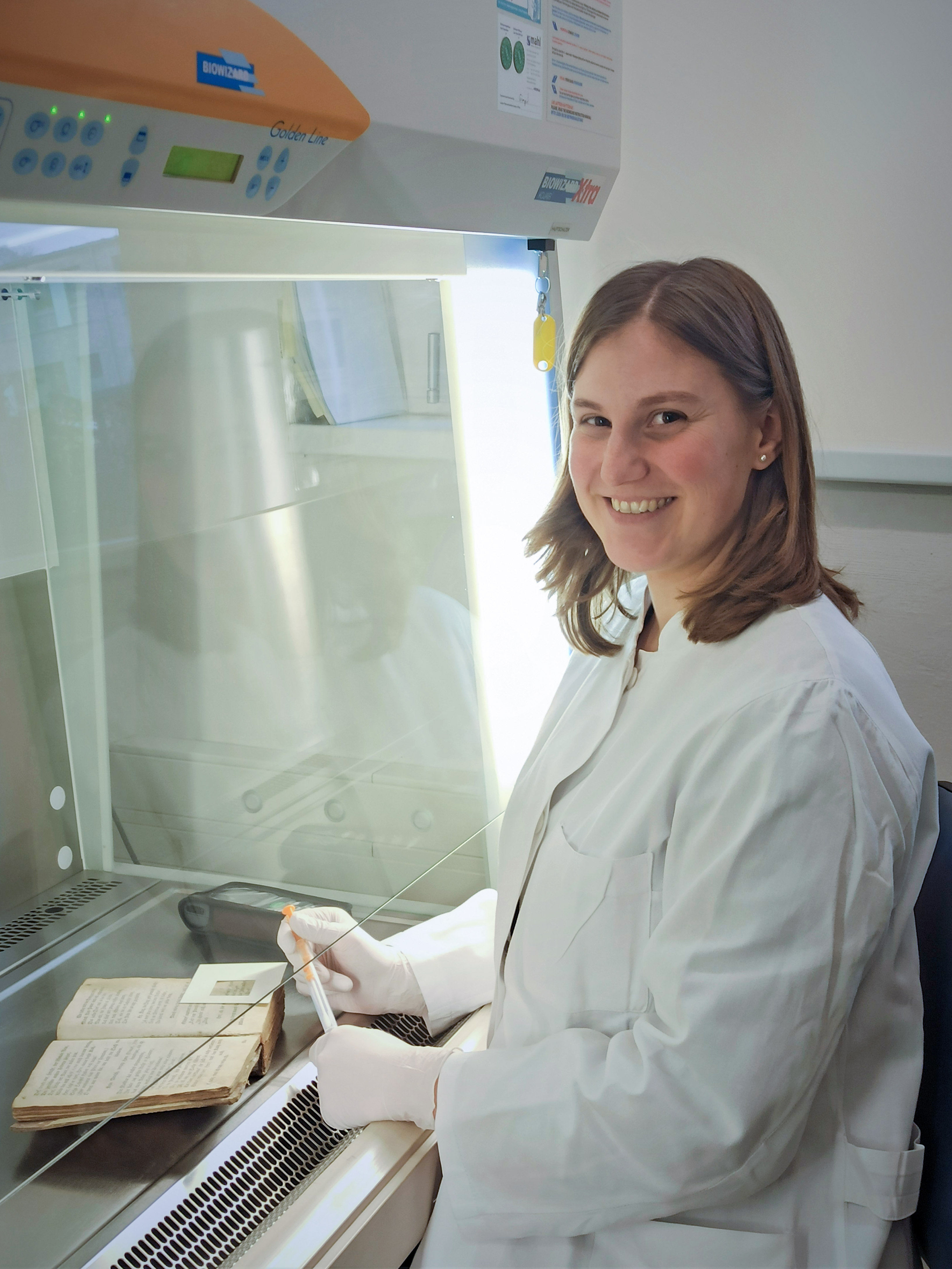 „Wir waren von Anfang an sehr glücklich, Friederike Nithack als Autorin gewonnen zu haben“, so die Leiterin des Hormann Instituts, Dr. Angela Weyer. „Sie hatte sich bereits während ihres Konservierungs- und Restaurierungsstudiums hier an der HAWK in Hildesheim mit Schimmelpilzen auf Papier und dem Umgang mit mikrobiell kontaminiertem Schriftgut beschäftigt. Sie war mir bereits im ersten Semester durch ihren akribischen Arbeitsstil aufgefallen. Nach ihrem Masterabschluss blieben wir in Kontakt und mir wurde deutlich, wie gerne sie mit demselben Engagement ihr Wissen vermittelt.“