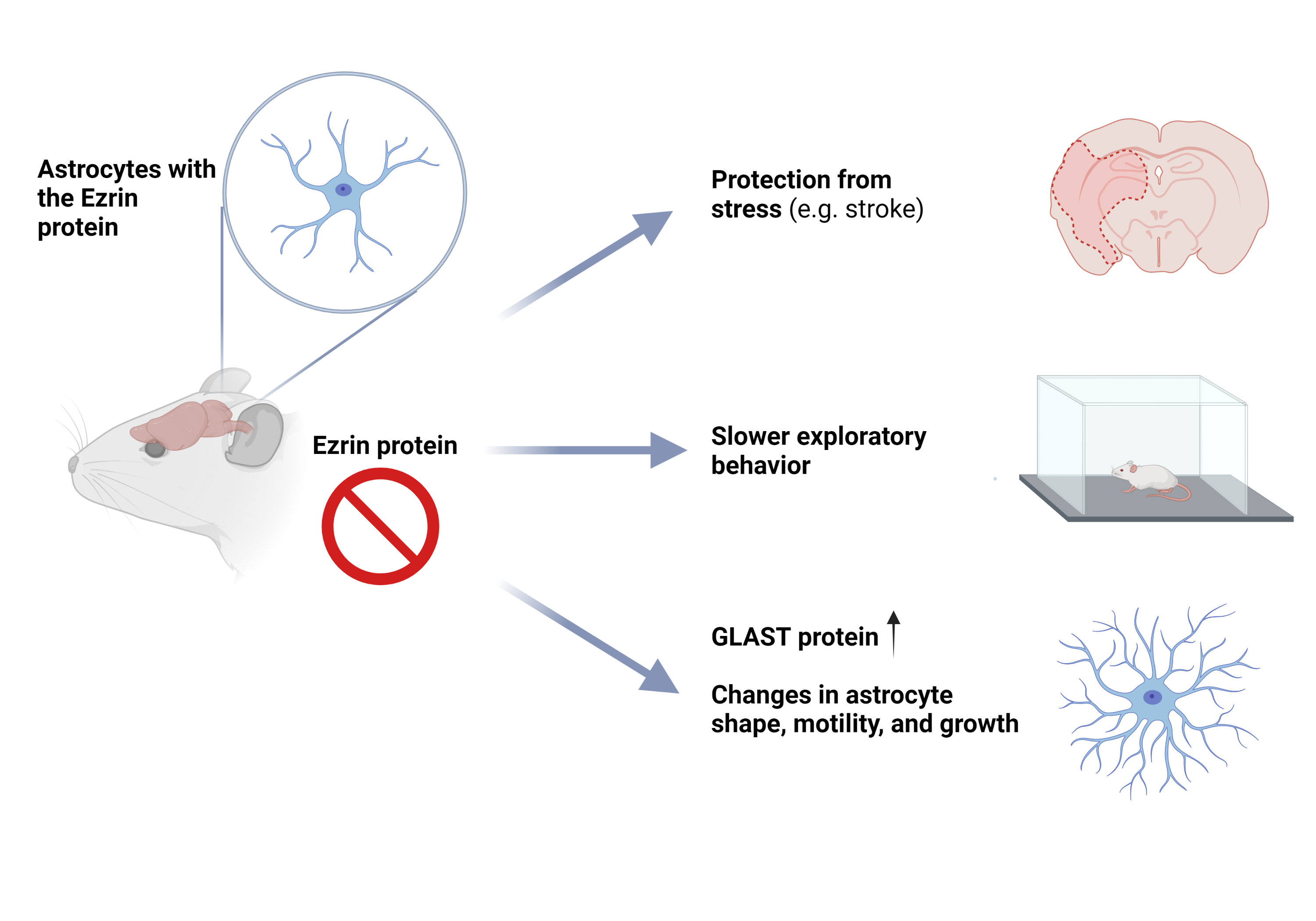 Astrocytes are now believed to play an important role in signal transduction in the brain through their radiating offshoots (known as astrocyte tendrils), with which they mediate contact between nerve cells and blood vessels. Among other important building blocks, the protein Ezrin is found abundantly in astrocyte tendrils. This suggests that Ezrin is also important for astrocyte function during neuronal development of the brain. Although Ezrin has been studied extensively in vitro in cell culture, up until now there have been few in vivo studies on the role of this protein in astrocytes.