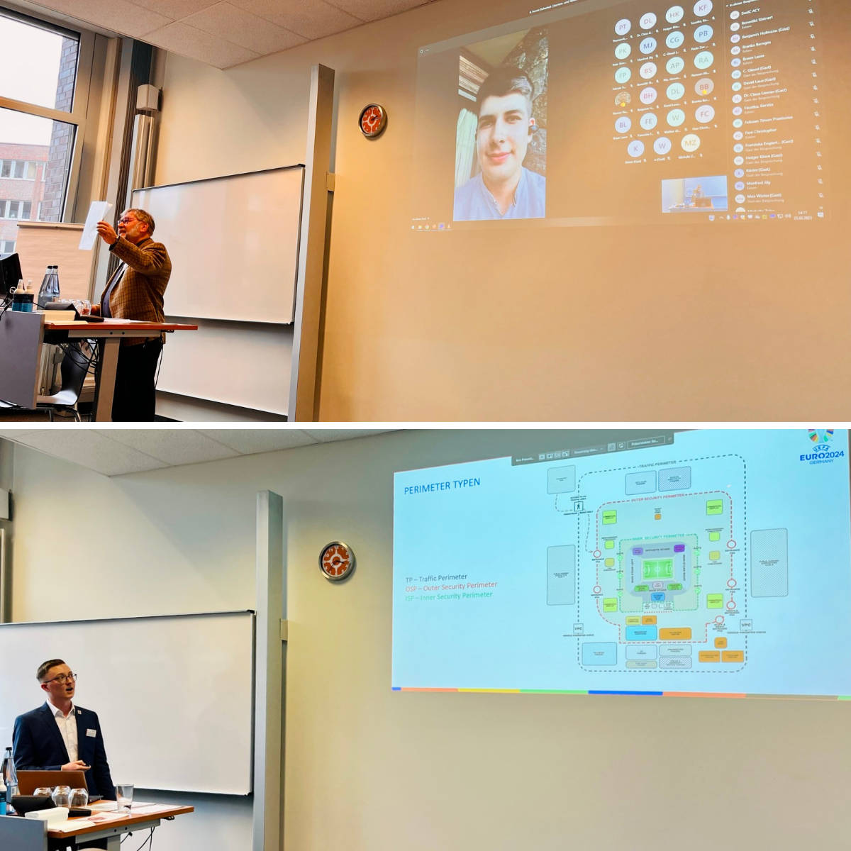 Für den zweiten Vortragenden Hans-Christian Rathke, Venue Safety & Security Cluster Coordinator der EURO 2024 GmbH, war das Forum ein Wiedersehen der besonderen Art, hatte er doch an der Northern Business School erfolgreich sein Studium Sicherheitsmanagement abgeschlossen. In seinem Vortrag stellte er anschaulich die Planungen für das Sicherheitskonzept der Fußballeuropameisterschaft 2024 und den damit verbundenen Personalbedarf dar, der für die Sicherheitsdienstleistungsbranche eine große Herausforderung darstellen könne.