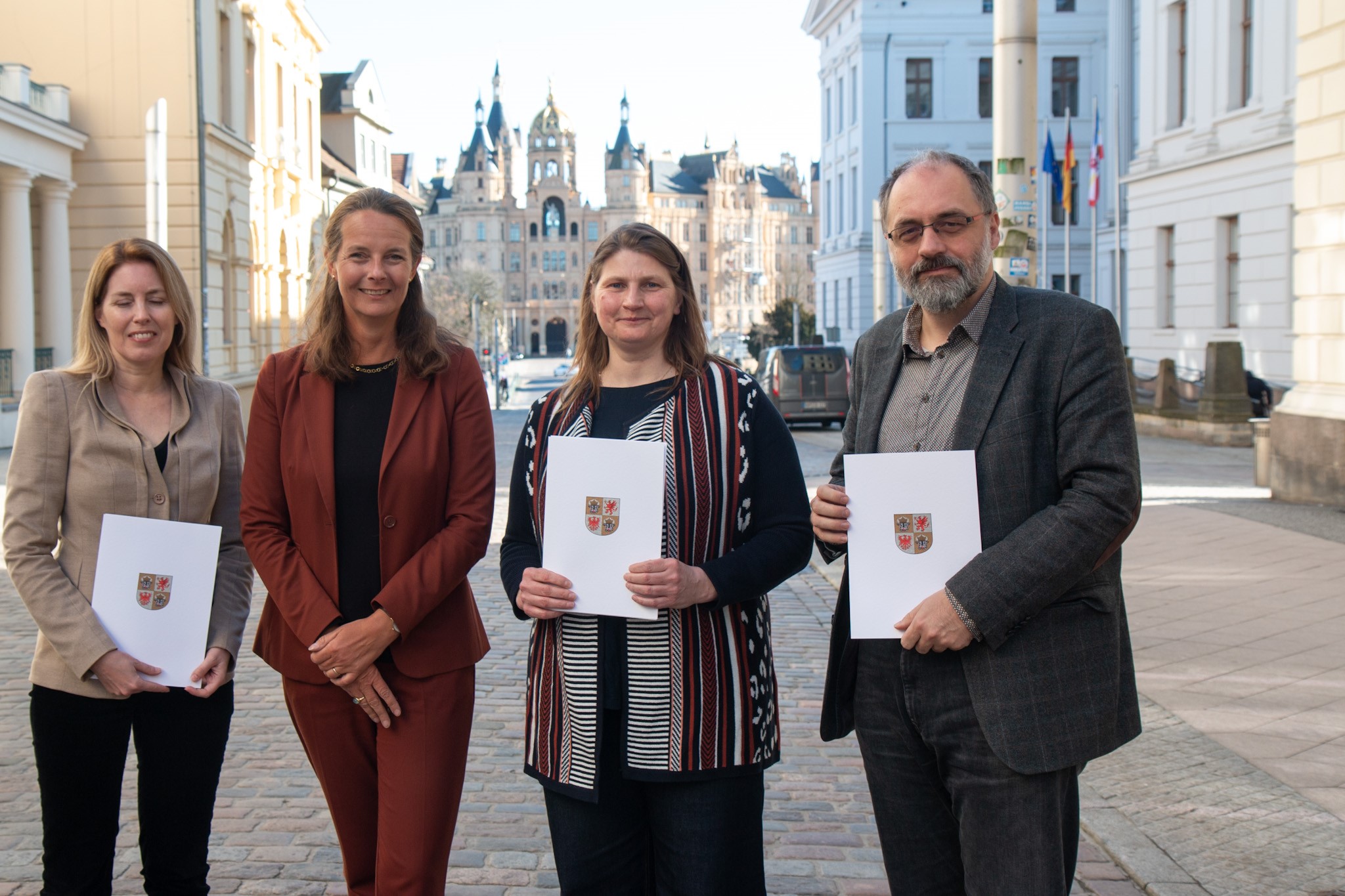 Wissenschaftsministerin Bettina Martin hat heute (28. Februar 2023) zwei neue Professorinnen und einen neuen Professor für den Dienst an den Hochschulen des Landes ernannt. In Schwerin übergab sie den drei Hochschullehrerinnen und -lehrern die Ernennungsurkunden und sprach mit Ihnen über ihre neuen Tätigkeiten in Wismar, Rostock und Greifswald.