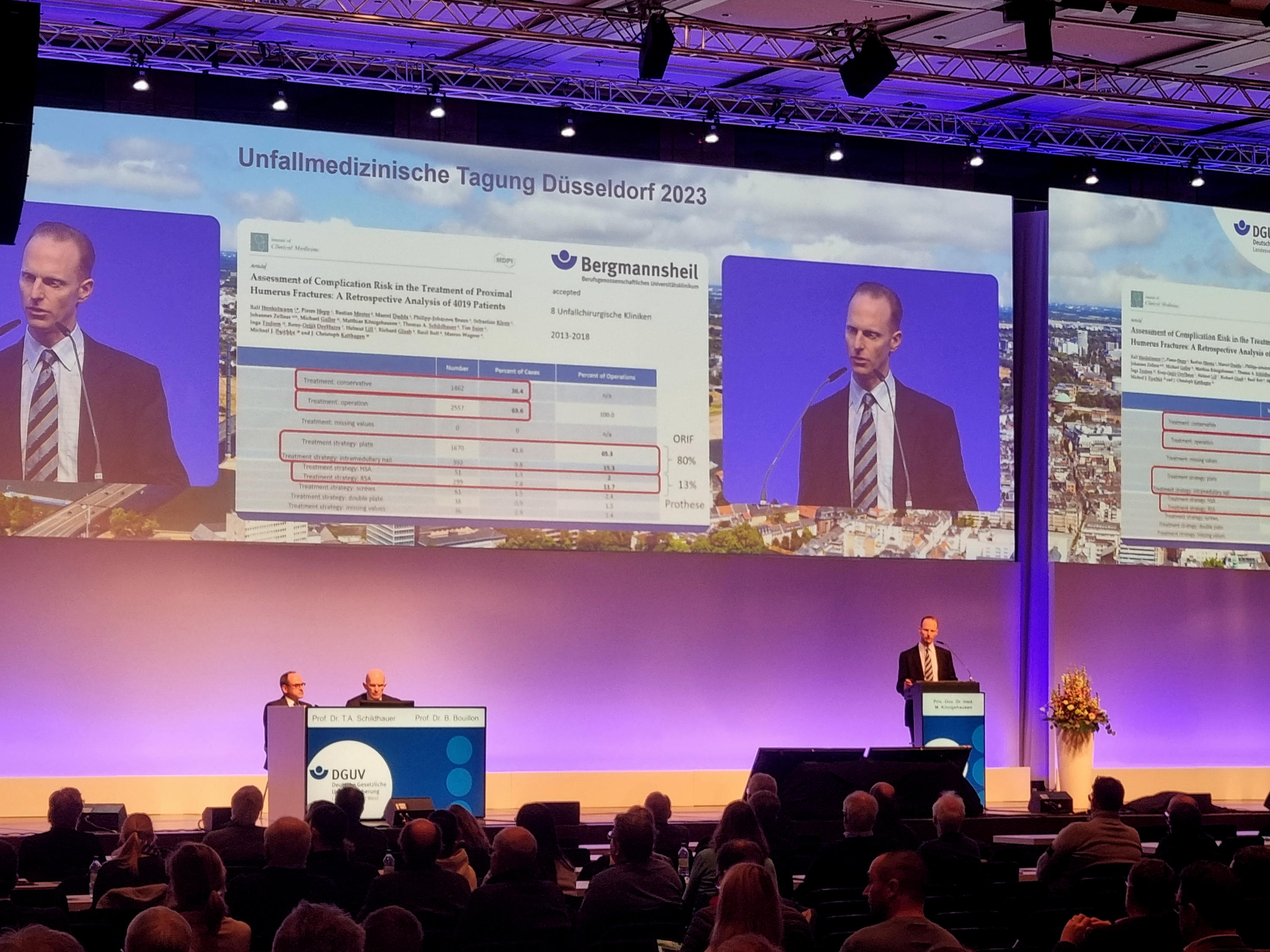 Über 2.000 Teilnehmende, mehr als 40 Referentinnen und Referenten, acht Sessions mit über 30 Vorträgen und Diskussionen: so die Bilanz der Unfallmedizinischen Tagung, die am 3. und 4. März 2023 im Congresscenter in Düsseldorf stattfand. Unter der wissenschaftlichen Leitung von Univ.-Prof. Dr. Thomas A. Schildhauer (BG Universitätsklinikum Bergmannsheil Bochum) und Univ.-Prof. Dr. Marcel Dudda (BG Klinikum Duisburg) wurde ein breites Themenspektrum geboten: von aktuellen Entwicklungen in der unfallchirurgischen und orthopädischen Versorgung bis zu Anpassungen und Herausforderungen im Heilverfahren der gesetzlichen Unfallversicherung. Die Unfallmedizinische Tagung zählt zu den größten Fachkongressen ihrer Art und wird regelmäßig vom Landesverband West der Deutschen Gesetzlichen Unfallversicherung (DGUV) ausgerichtet.