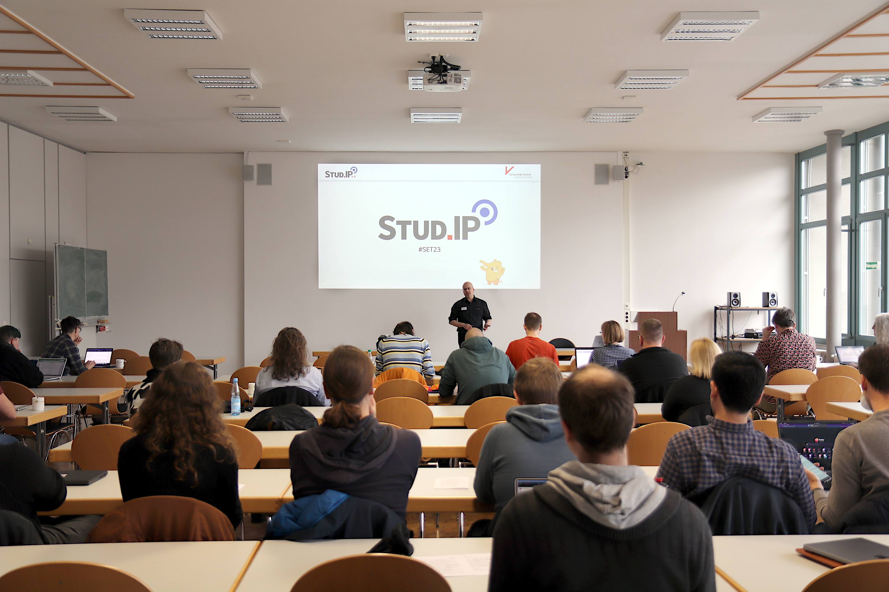 Stud.IP ist eine internetbasierte Arbeitsumgebung, welche für das Management der Lehrveranstaltungen an Hochschulen entwickelt wurde und als zentrale Plattform zum Austausch zwischen Lernenden und Lehrenden dient. Hier werden u.a. Dateien ausgetauscht, Kurse organisiert oder Vorlesungsverzeichnisse generiert. Rund 120 Hochschulen und Behörden in Deutschland nutzen die Anwendung, tauschen sich dazu aus und arbeiten an der Weiterentwicklung. So haben sich vom 9. bis zum 11. März rund 40 Fachleute an der Uni Vechta zur Entwicklungstagung 2023 mit anschl. Codewochenende getroffen. Die Hochschule organisierte die Veranstaltung in Kooperation mit dem Stud.IP e.V und dem Dienstleister „data-quest“.