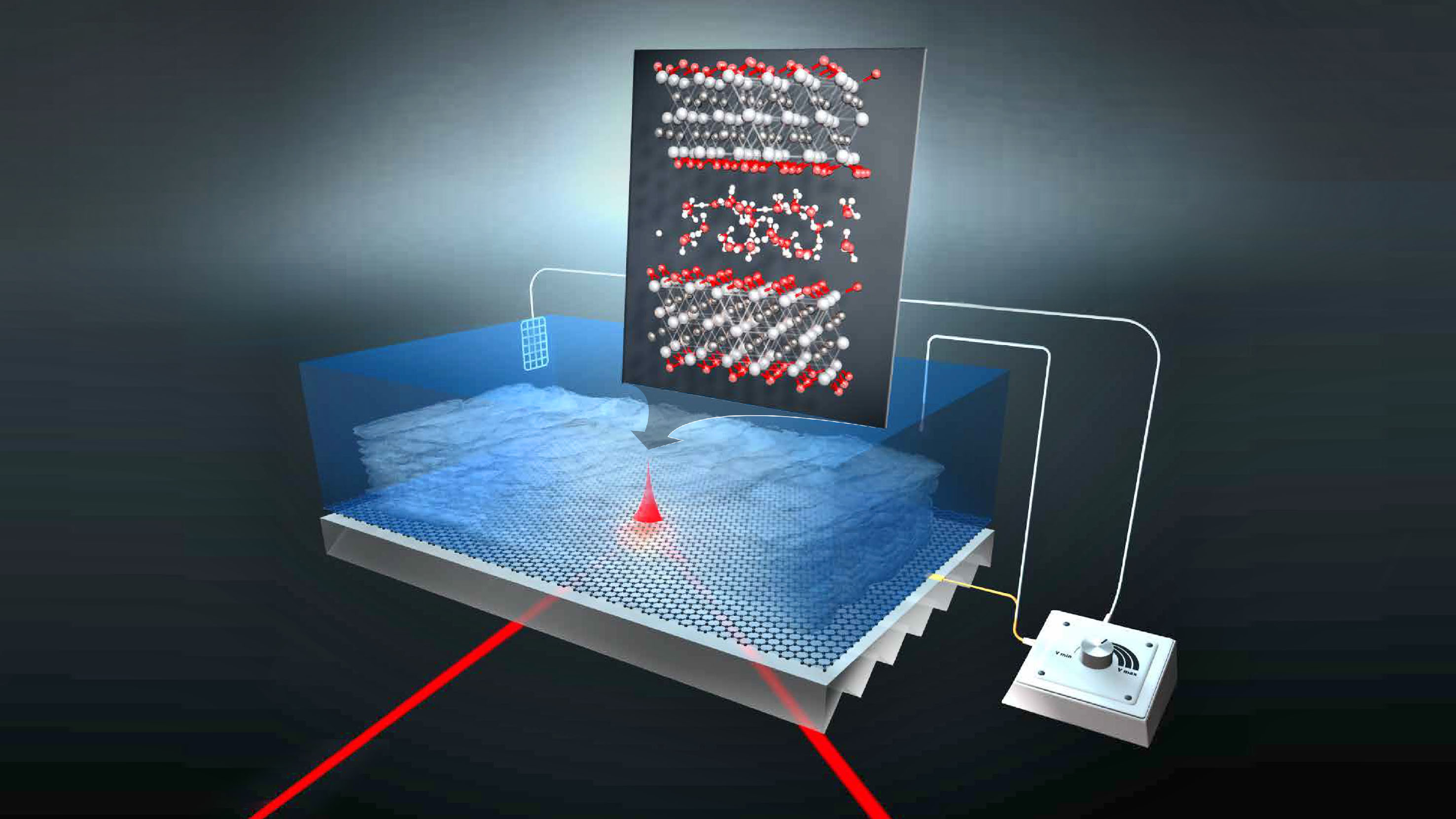 In den letzten Jahren war es bereits gelungen, in solchen MXenen die Energie von Protonen in hohem Ausmaß zu speichern und wieder freizusetzen. Unklar war jedoch, ob die Ladungen hauptsächlich durch die Adsorption von Protonen an der MXene-Oberfläche oder durch die Desolvatisierung von Protonen in der MXene-Zwischenschicht gespeichert werden. Die Erwartung war, dass sich Protonen in dem extrem dünnen Wasserfilm, der aus nur 2-3 Moleküllagen Wasser besteht, anders verhalten als in Wasservolumen. Bislang war es jedoch nicht möglich, Protonen im Inneren einer MXene-Elektrode während des Ladens und Entladens zu charakterisieren.
