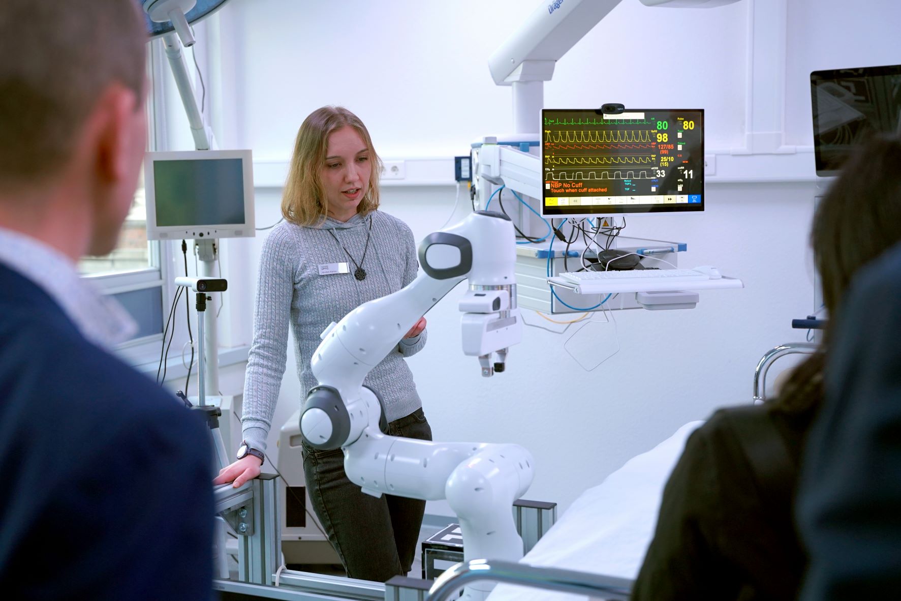 Danach hatten die Besucherinnen und Besucher die Möglichkeit, drei OFFIS-Labore zu besichtigen. Vorgestellt wurde das „IDEAAL-Labor“ – eine Zweiraum-Wohnung, in der assistive Technologien für die Unterstützung alleinlebender älterer Menschen sowie innovative Technologien für die ambulante Pflege erlebt werden können. Ergänzend dazu wurden auch Labore zum Thema Industrie 4.0 und zur Intensivstation/Intensivpflege geöffnet. Darüber hinaus konnte an drei Thementischen mit den Mitarbeiterinnen und Mitarbeitern von CITAH das direkte Gespräch gesucht werden. Die Thementische waren den drei Schwerpunkten des Zentrums zugeordnet: