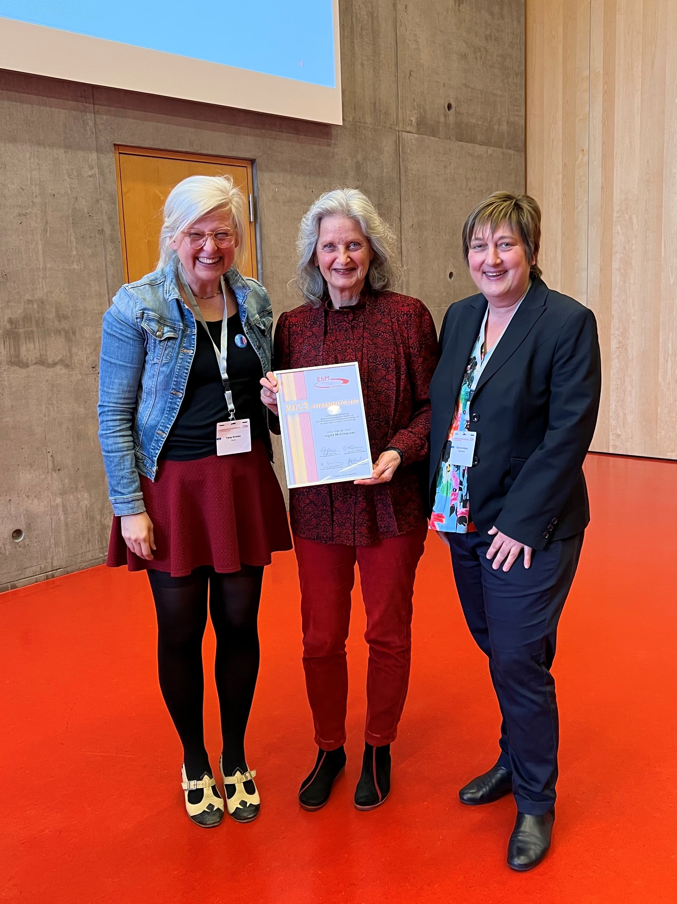 Seit Gründung des EbM-Netzwerks vor 25 Jahren ist Ingrid Mühlhauser das fünfte Ehrenmitglied des EbM Netzwerks und darunter die erste Frau.