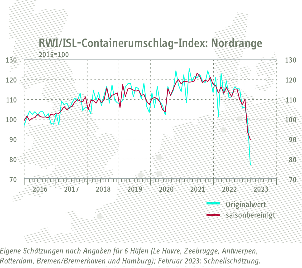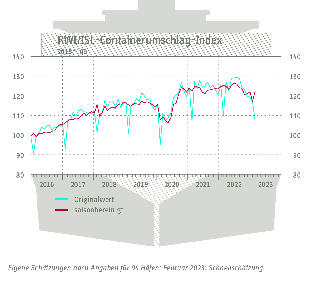 • Der RWI/ISL-Containerumschlag-Index für März 2023 wird am 27. April 2023 veröffentlicht.