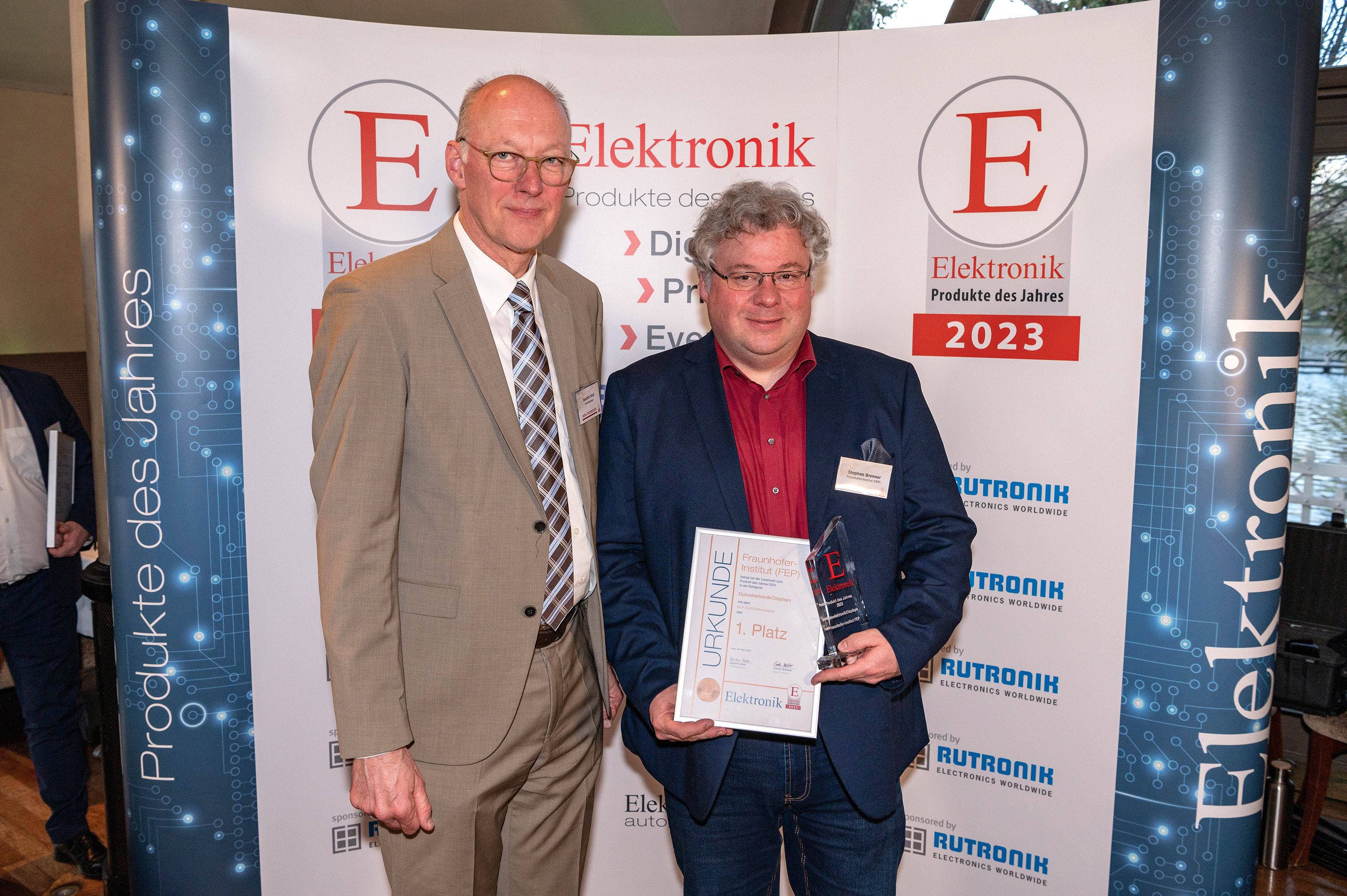 The electronics industry is one of the most innovative. That is why the readers of the journal Elektronik and the online platform elektroniknet.de had no less than 111 innovative products to choose from, from which they could select the finalists in ten categories as their favorites. The researchers at Fraunhofer FEP were pleased to be among the finalists. In the category "Optoelectronics and Displays", the new ultra-low power OLED microdisplay entered the race and won first place.