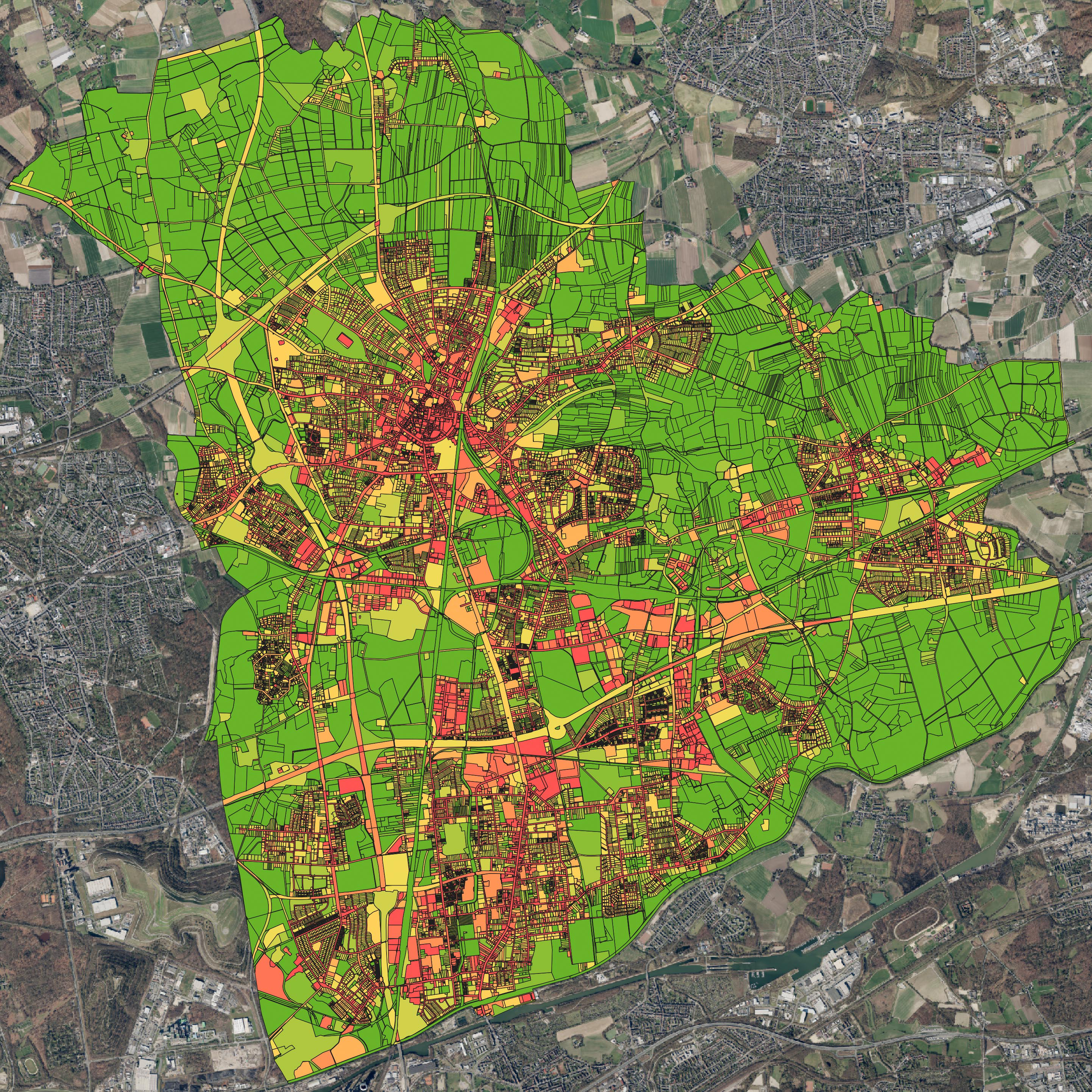 Die negativen Auswirkungen der Versiegelung städtischer Flächen werden immer wieder diskutiert. Dazu gehören u. a. erhöhte Oberflächenabflüsse und Überflutungsrisiken, höhere Temperaturen und Luftverschmutzung, sowie der Verlust von Lebensräumen für Pflanzen und Tiere. Ein Forschungsteam der Westfälischen Hochschule hat nun in Zusammenarbeit mit dem Kreis Recklinghausen eine Software entwickelt, die auf Künstlicher Intelligenz basiert und vollautomatisiert versiegelte Flächen erkennen und klassifizieren kann. Diese gewonnenen Auswertungen sollen die Grundlage bilden, um im nächsten Schritt klimawirksame Maßnahmen für die Kreisstädte umzusetzen.