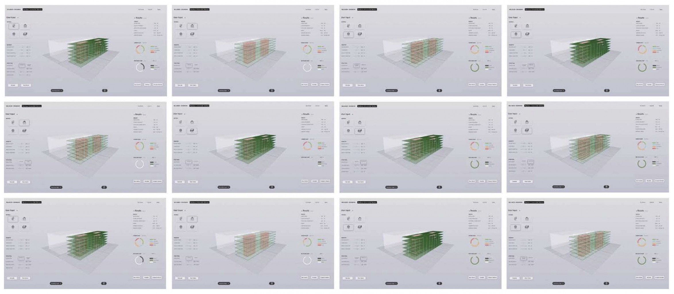 Dieser Wettbewerbsbeitrag stellt ein Werkzeug vor, das Webtechnologie und Open-Source-Tools nutzt, um unterschiedliche Varianten eines Gebäudes hinsichtlich der Entwurfsparameter wie Material, Tragsystem, Stützenraster und vielem mehr zu vergleichen. Dieser Vergleich bezieht nicht nur Kriterien des nachhaltigen Bauens wie den ökologischen Fußabdruck eines Gebäudes ein, sondern auch praktische Ergebnisse wie Baukosten. Auf diese Weise können bereits in den frühen Entwurfsphasen datenbasierte Entscheidungen getroffen werden. Durch die Umgehung kommerzieller Software liefert die Arbeit darüber hinaus einen wichtigen Beitrag zur Demokratisierung von Planungsprozessen.