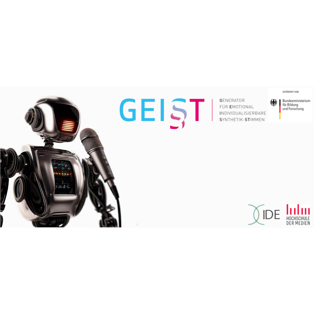 Künstliche Intelligenz (KI) ist in aller Munde. Die Technologie unterstützt bereits Unternehmen in deren Entwicklung. Doch ihr Einsatz ist auch mit vielen offenen Fragen, gerade im ethischen Bereich, verbunden. Das Institut für Digitale Ethik an der HdM beschäftigt sich seit April 2023 im Rahmen des Projektes „GEI§T“ mit der individualisierbaren, synthetischen Stimmerzeugung und erforscht den Einsatz von künstlichen Stimmen in der zukünftigen Medienproduktion. Zu den Projektpartnern zählen die Hamburger Medienproduktionsfirma nachtblau und das Fraunhofer Institut für Digitale Medientechnologie an den Standorten Oldenburg und Ilmenau.