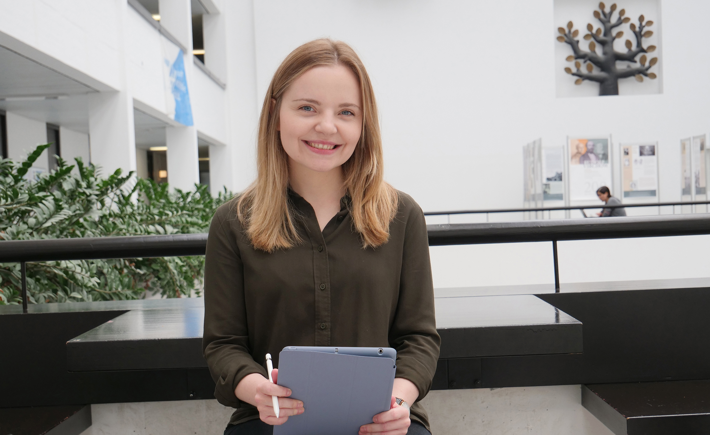 Ihr digitales Grammatik-Lerntool erarbeitet die junge Anglistin für die Lernplattform mebis, die an die Bedürfnisse bayerischer Schulen angepasst ist. Auf Basis sprachwissenschaftlicher Datenbanken entwickelt sie Grammatik-Aufgaben und bereitet diese schulgerecht für die Nutzung auf Tablets auf.