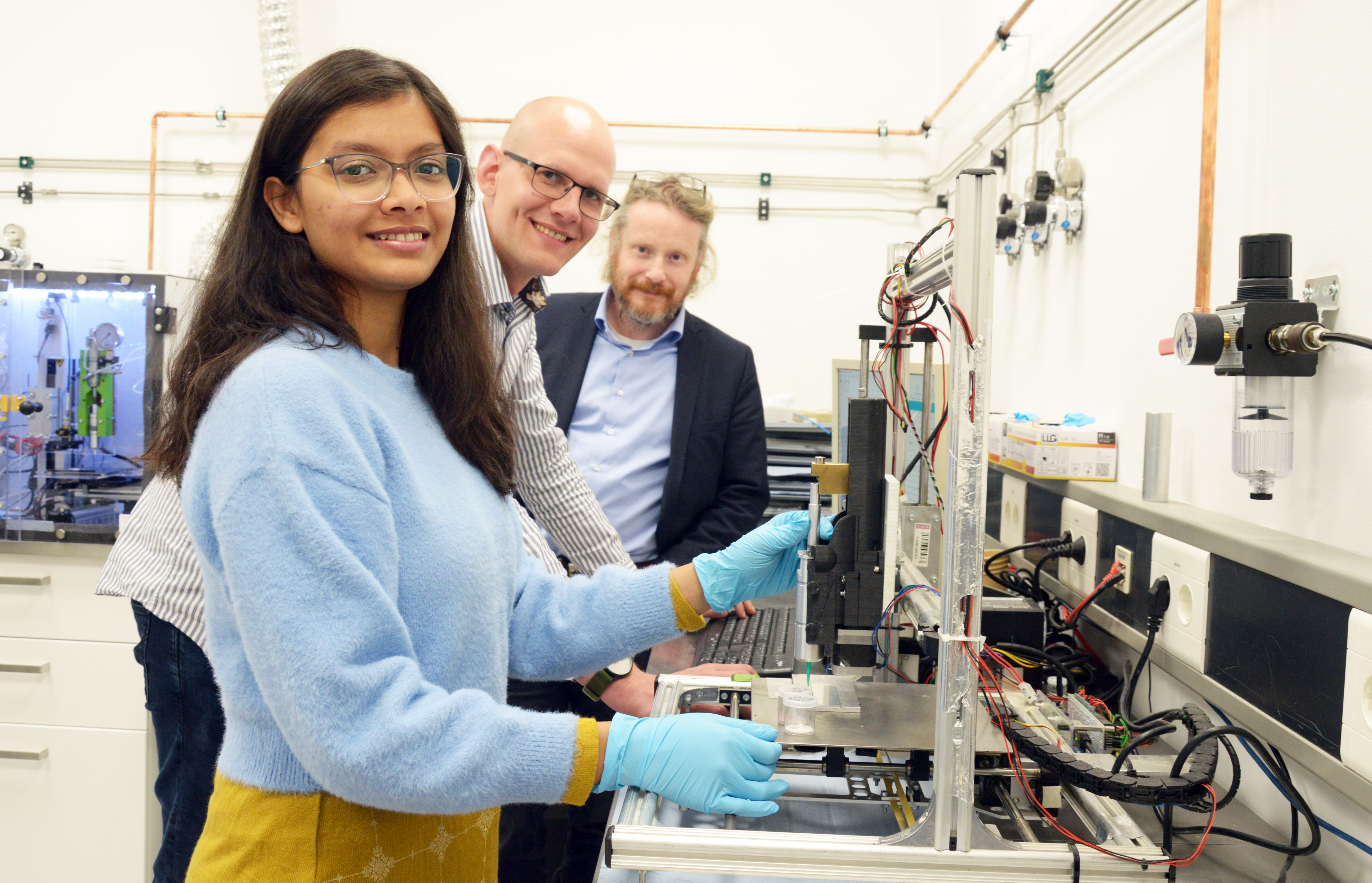 In seinem Teilprojekt in der Anorganischen Chemie der CAU will Stock MOFs basierend auf hochsensitiven Metalloxidstrukturen herstellen und arbeitet dafür eng mit Professor Rainer Adelung und Dr. Leonard Siebert aus der Arbeitsgruppe Funktionale Nanomaterialien zusammen. Die speziellen Nanostrukturen werden in der Kieler Materialwissenschaft schon lange erforscht und hergestellt. Außerdem nutzen die Materialforschenden ihre langjährige Erfahrung im 3D-Druck, um im zweiten Kieler Teilprojekt Sensoren zu erstellen, die mehrere Schadstoffe detektieren. „Leistungsfähige Sensoren müssen vor allem sensitiv, selektiv und stabil sein, also auch geringe Mengen des gesuchten Stoffes langfristig zuverlässig nachweisen“, sagt Co-Teilprojektleiter Dr. Leonard Siebert. „Mit unseren Materialien und 3D-Drucktechniken hoffen wir, gleich mehrere Faktoren zu verbessern.“