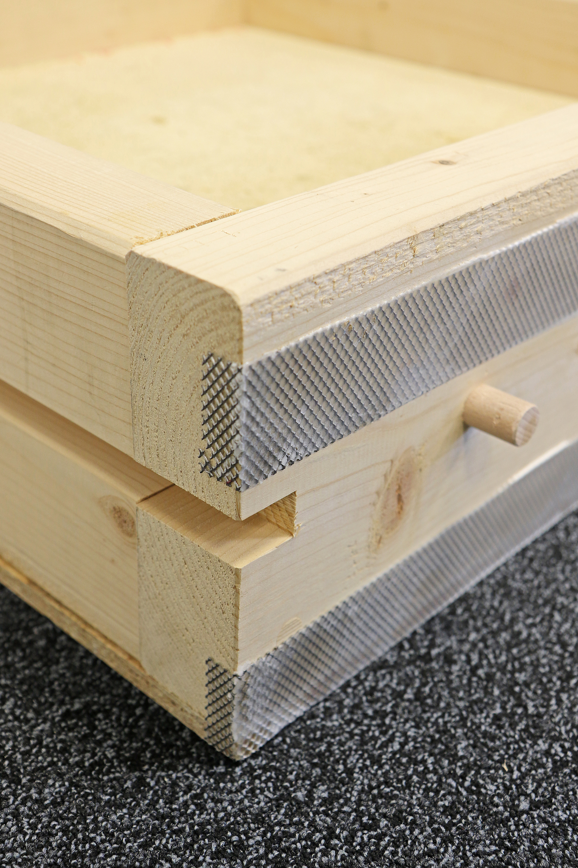 Für den Sandwichkern in der Kastenfüllung wurde der bereits am Fraunhofer WKI entwickelte Holzschaum genutzt, durch den sich gleichzeitig die Wärme- und Schalldämmung erhöht. »Die Schallabsorption durch den Holzschaum funktioniert so gut, dass die Kleintafeln auch als Akustikplatten zur Verbesserung des Raumklanges eingesetzt werden könnten«, sagt Dr. Sydow. Der ökologische Holzschaum ersetzt petrochemische Dämmmaterialien wie PU- oder XPS-Schäume durch nachwachsende Rohstoffe.