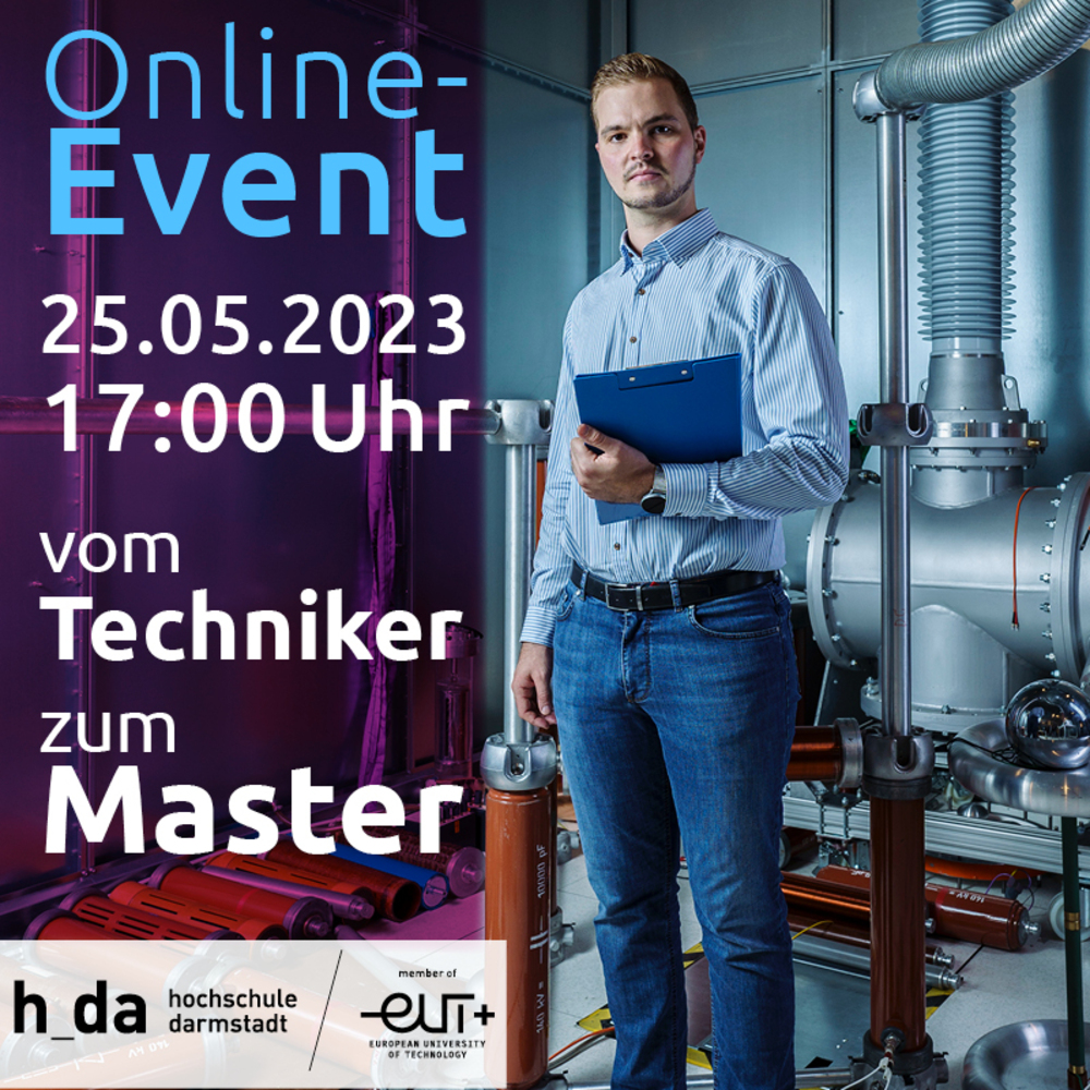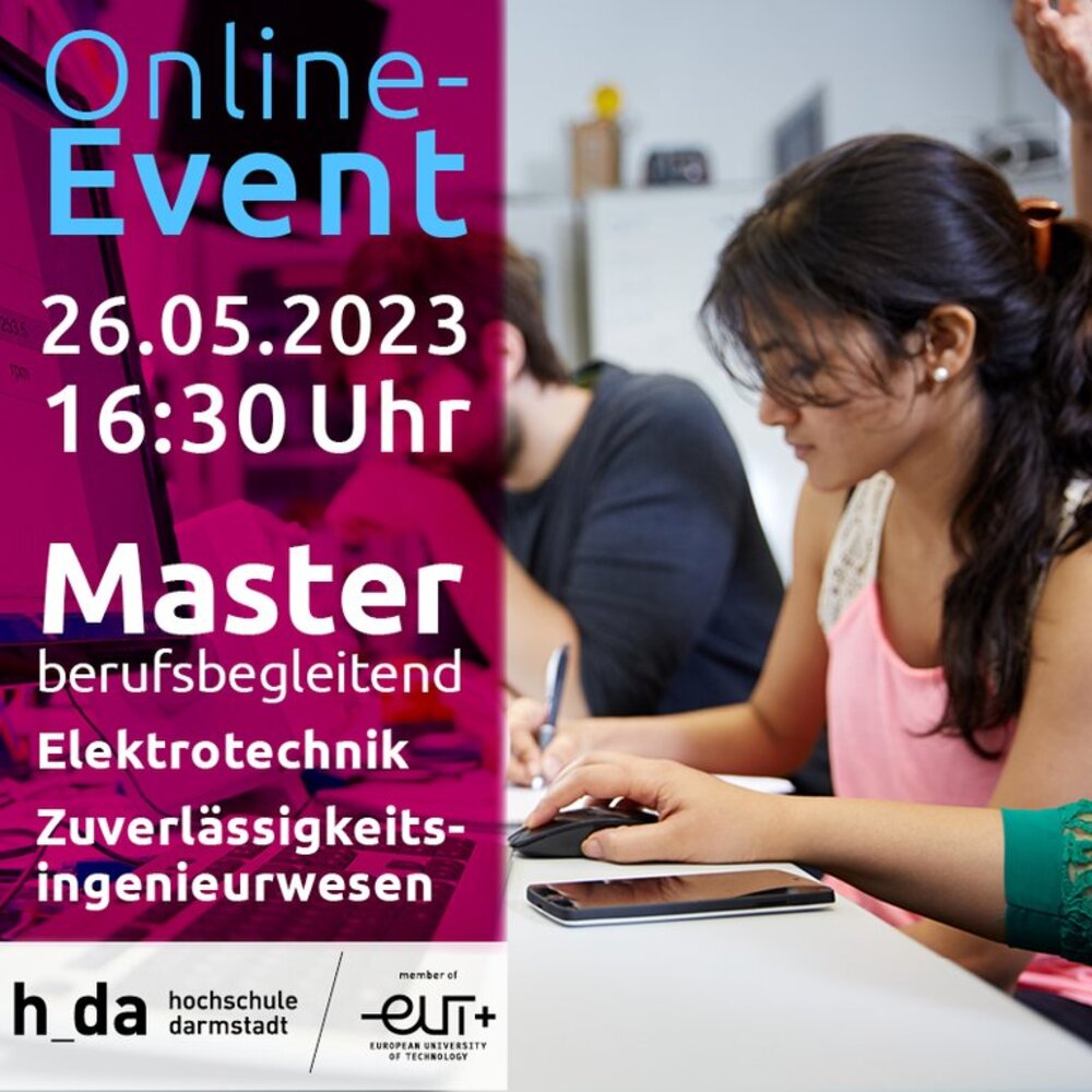 In zwei Terminen stellt die Hochschule Darmstadt die berufsbegleitenden Fernstudiengänge Elektrotechnik mit dem Abschluss Master of Science (M.Sc.) und Zuverlässigkeitsingenieurwesen mit dem Abschluss Master of Engineering (M.Eng.) vor. Der erste Termin am Donnerstag, den 25. Mai 2023 ab 17.00 Uhr richtet sich speziell an Studieninteressierte ohne akademische Vorbildung, die in Hessen über das Projekt „Vom Techniker zum Master“ in das Studium einsteigen möchten. Am Freitag, den 26. Mai ab 16.30 Uhr werden alle Weiterbildungsinteressierten über Zugangsvoraussetzungen, Studieninhalte, Ablauf und Studienorganisation informiert und können auch individuelle Fragen stellen. Um eine unverbindliche Voranmeldung per Mail an fernmaster.fbeit@h-da.de wird gebeten, danach erhalten die Teilnehmenden die Zugangsdaten zum Zoom-Meeting zugeschickt.