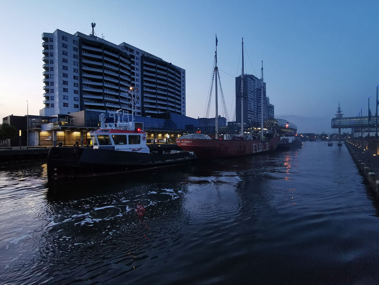 Around 4 a.m. in the morning, the lines fell and the 44-meter lightship ELBE 3 was towed by two tugboats through the museum harbor to the New Harbor and from there into the Outer Weser to the fishing port in the Bredo shipyard. Coordinated by bremenports, the ship will be thoroughly refurbished and renovated there by Rupertus-Strako GmbH during a stay of around three months at the shipyard. The tow was actually scheduled to take place on Wednesday, but had to be canceled due to bad weather.