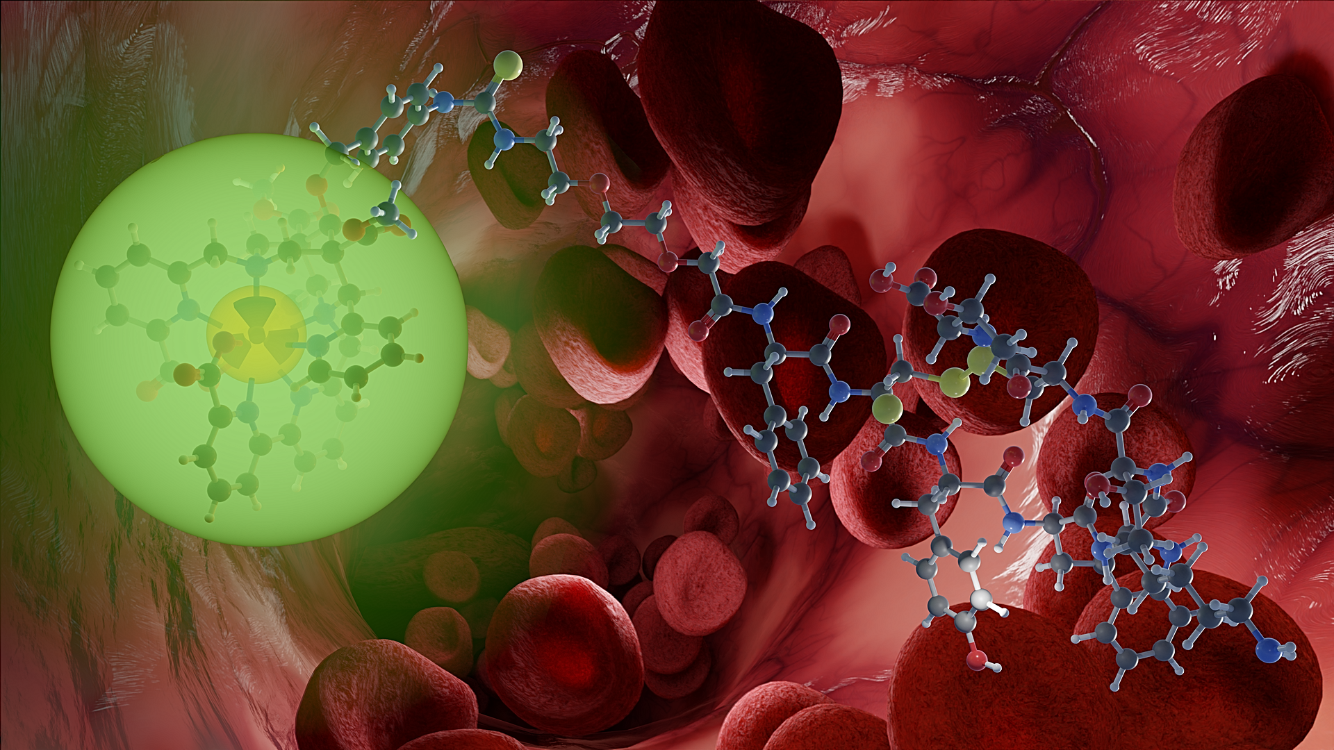 Das jeweilige Radionuklid ist dabei in einem sogenannten Chelator stabil gebunden und über eine Art chemische Brücke mit einem Biomolekül verknüpft. „Das Wort Chelator ist dem Lateinischen entlehnt, sein Wortstamm assoziiert eine Umklammerung durch Krebsscheren. Wir bevorzugen das Bild eines molekularen Käfigs, der das Radionuklid fest umschließt, damit es sich nicht unkontrolliert im Körper verteilen kann. Das zielsuchende Biomolekül wiederum muss genau zu den Andockstellen auf den Krebszellen passen, gerade so wie ein Schlüssel zu einem Schloss. Das Radionuklid reichert sich daraufhin am Tumorgewebe an und entfaltet ausschließlich dort seine zerstörerische Wirkung – so der Plan“, sagt Kubeil.