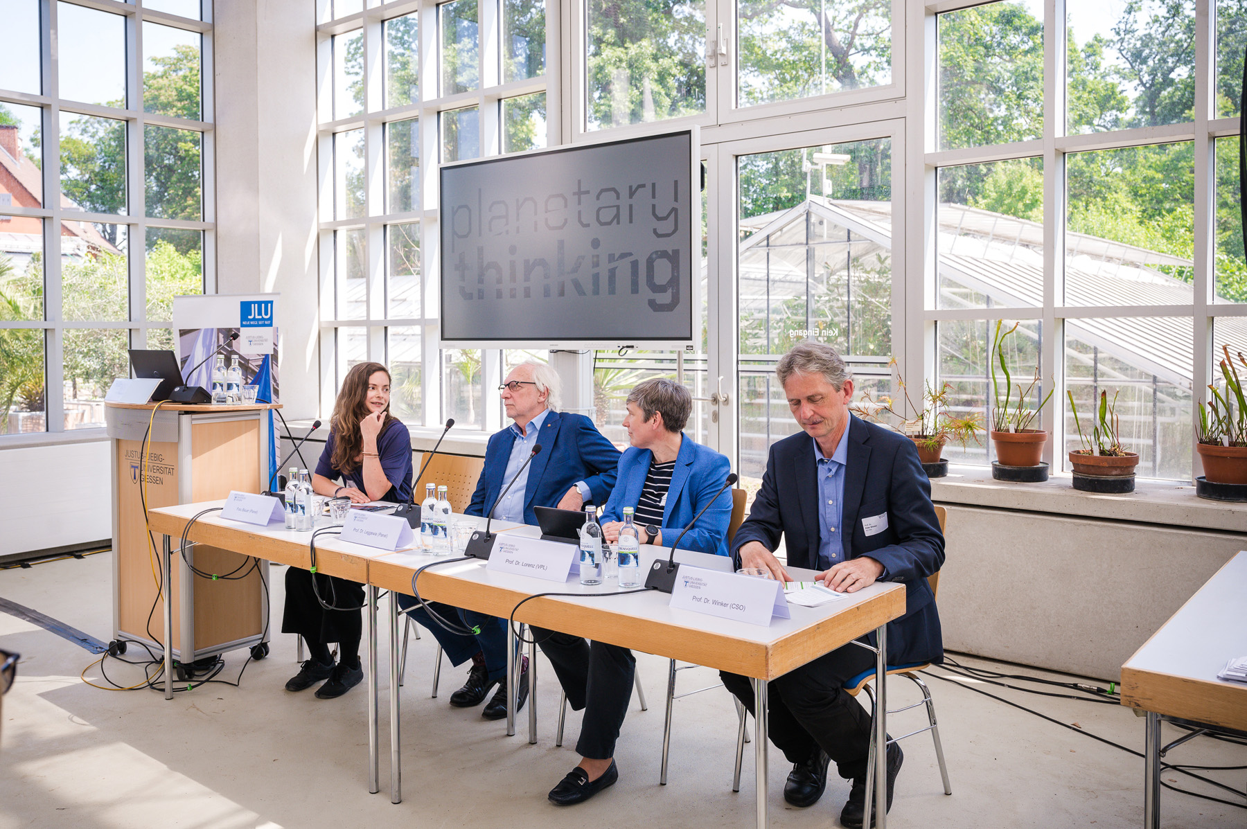 JLU-Präsident Prof. Dr. Joybrato Mukherjee hob in seiner Begrüßung die Vorbildfunktion der Universität Gießen hervor: „Die JLU unterstützt die nachhaltige Transformation der Gesellschaft aktiv mit ihren vielfältigen Forschungs-, Lehr- und Transferaktivitäten. Als zukunftsorientierte Institution hat die JLU vor allem auch den Anspruch, ihre eigene nachhaltige Entwicklung voranzutreiben.“ Neben dem institutionellen Handeln komme es auf die wissenschaftliche Reflexion an, erklärte der Präsident. „Mit dem Panel on Planetary Thinking haben wir an der JLU einen offenen Reflexionsraum geschaffen, in dem wir Zukunftsfragen diskutieren und die Wechselwirkungen zwischen Planet und Mensch aus unterschiedlichen Perspektiven beleuchten können.“