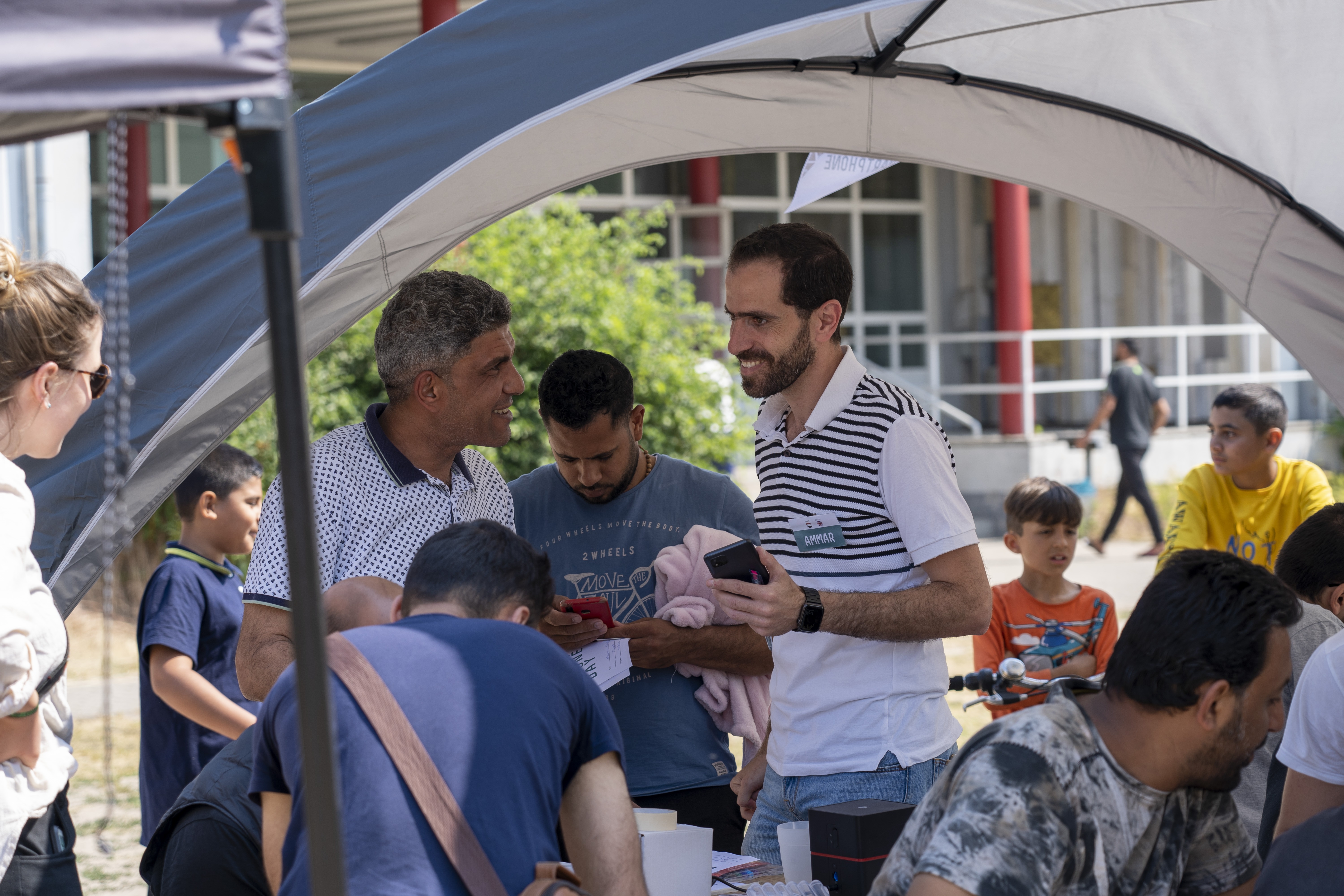 Am 06. Juni 2023 gestalteten Mitarbeiter:innen der Forschungsgruppe WIMM am Fachbereich Wirtschaft der Hochschule Mainz einen Aktionstag mit digitalen Smartphone-Lernkursen für Geflüchtete in Speyer. Über 180 Bewohner:innen der Aufnahmeeinrichtung für Asylbegehrende (AfA) in Speyer besuchten den „Smartphone Tag“, der als Abschlussevent im Rahmen des Projekts „Digitale Qualifizierung von Migrant:innen“ (DigiQ) durchgeführt wurde. Mitarbeiter:innen der Forschungsgruppe WIMM unterstützten dabei zusammen mit Prof. Sven Pagel das DigiQ-Projektteam, das seit August 2022 elf Computer-Kurse aus sechs verschiedenen, eigens für die Zielgruppe konzipierten Modulen durchgeführt hat.