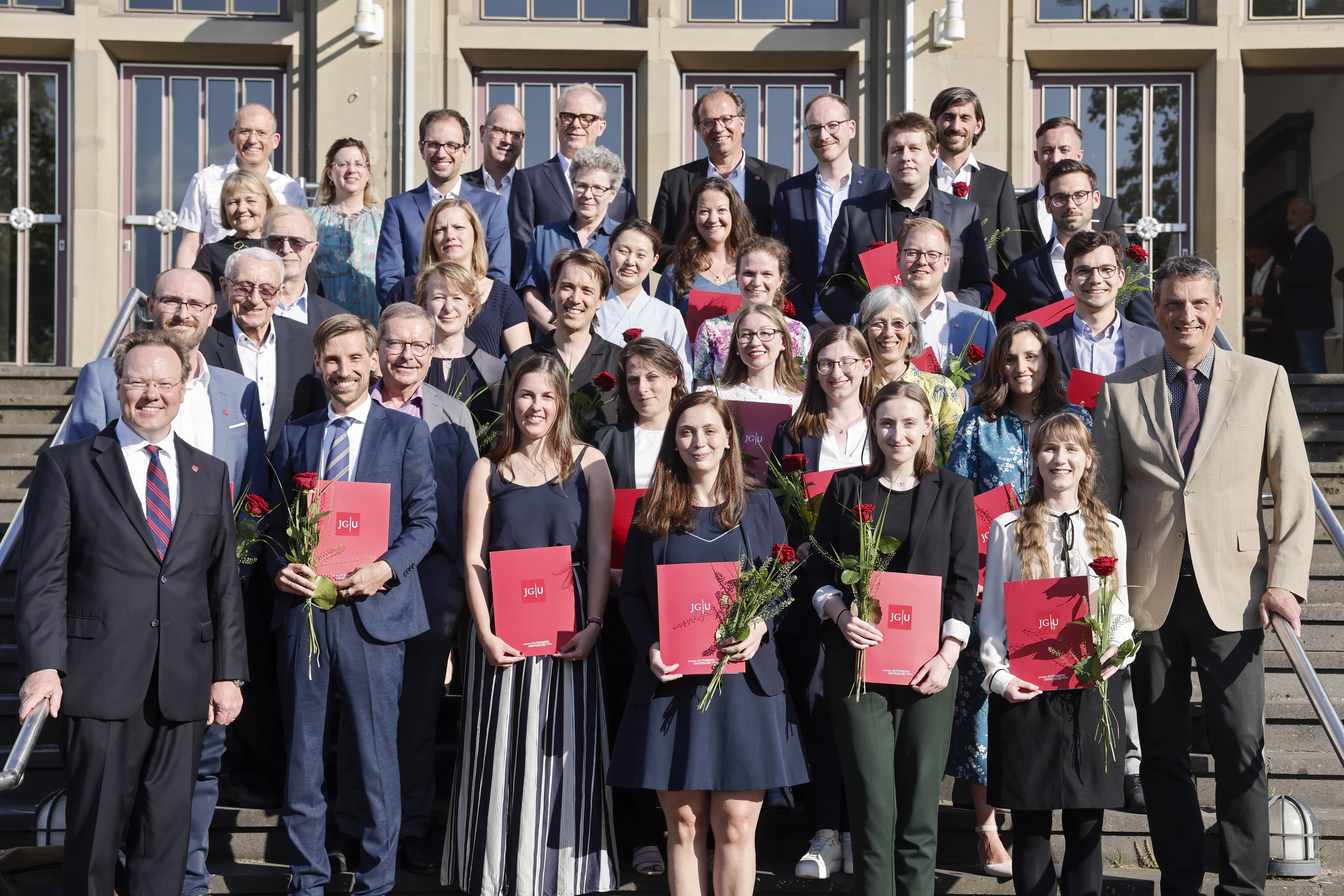 Jährlich werden an der JGU zwischen 600 und 700 Nachwuchswissenschaftlerinnen und -wissenschaftler sowie Nachwuchskünstlerinnen und -künstler promoviert, rund 5.000 erhalten berufsqualifizierende Abschlüsse. Auf dem DIES ACADEMICUS werden einige derjenigen geehrt, die durch ihre Leistungen besonders herausragen. In diesem Jahr sind dafür neben dem Sibylle Kalkhof-Rose Universitätspreis die folgenden Preise und Stipendien vergeben worden: