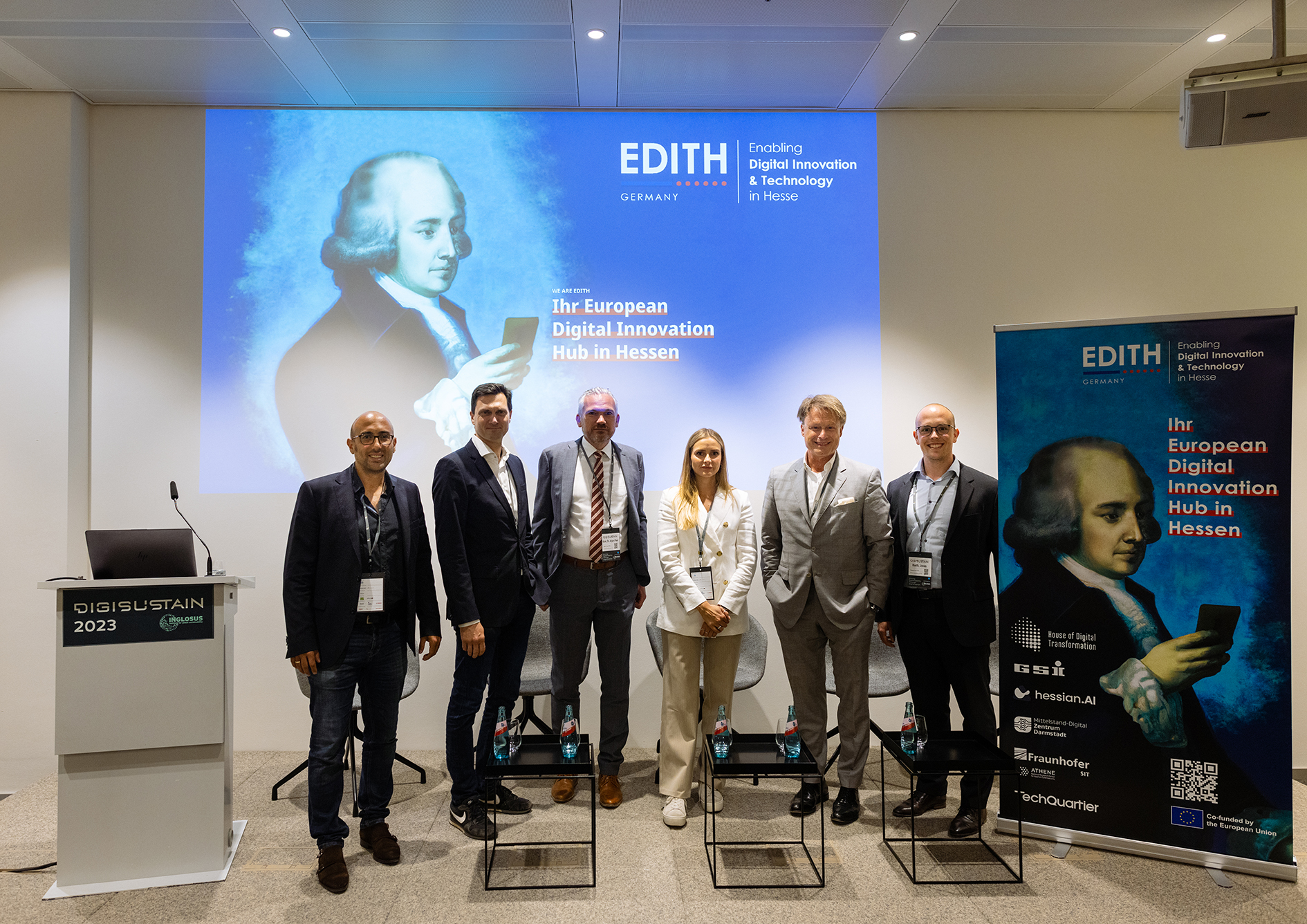 Die Mission des Digital Innovation Hubs ist es, kleine und mittlere Unternehmen (KMU), Start-ups und Kommunen in Südhessen einschließlich der Metropolregion Frankfurt/Rhein-Main bei der Umsetzung ihrer Digitalisierungsvorhaben zu begleiten, den digitalen Gap in Hessen zu schließen und die Region zu einer der smartesten sowie nachhaltigsten in ganz Europa zu machen. Auf der Fachkonferenz Digisustain 2023 in Frankfurt am Main stellte EDITH am 12. Juni sein neues Angebot vor und beantwortete die Fragen des Fachpublikums.