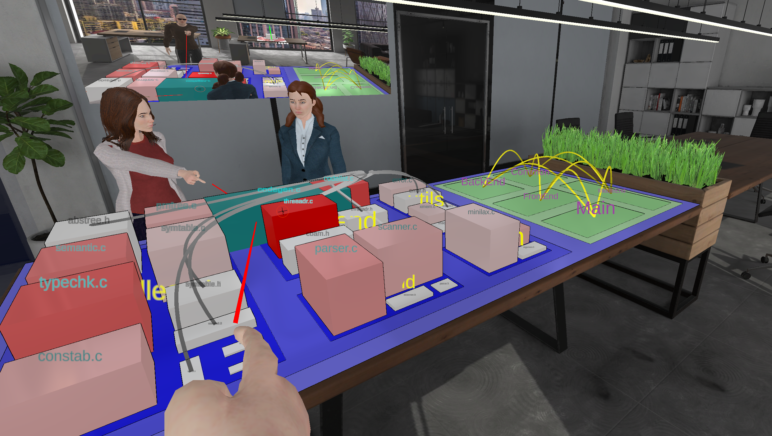 Im aktuellen Projekt wollen die Wissenschaftler sowohl herkömmliche Desktop-Hardware und Tablet-Geräte als auch fortschrittlichere Hardware für virtuelle Realität (VR) und erweiterte Realität (AR, engl. „augmented reality“) so integrieren, dass Mitglieder eines Entwicklungsteams ein einheitliches und zutreffendes Bild ihrer Software über räumliche Distanzen hinweg bekommen. Die Visualisierung von Software für Gruppen statt einzelnen Betrachtern ist bis jetzt wenig erforscht.