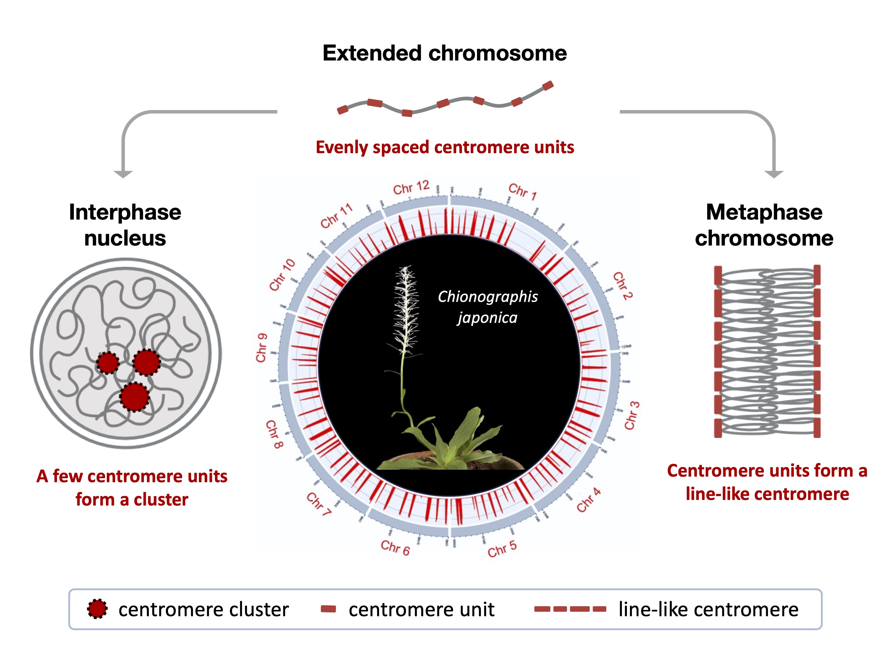 Holozentrische Chromosomen haben sich sowohl bei Tieren als auch bei Pflanzen mehrfach unabhängig von X-förmigen monozentrischen Chromosomen entwickelt. Der Mechanismus hinter dem Übergang zu diesem Zentromertyp ist aber bisher unbekannt. Das internationale Forschungsteam hat das Referenzgenom der Lilienart Chionographis japonica zusammengestellt und die Organisation des Holozentromers analysiert.