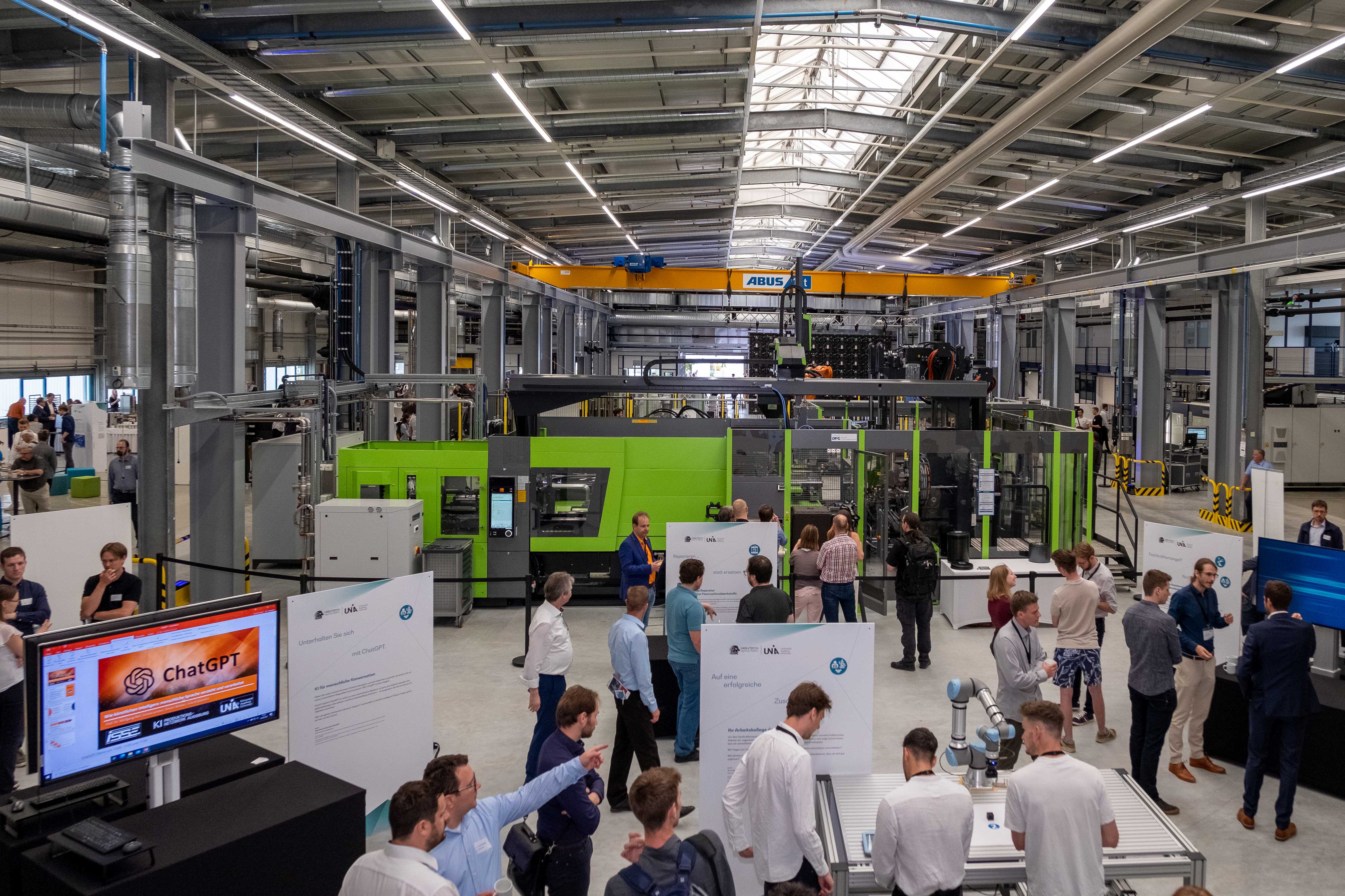 „Durch das offene Hallenkonzept wird die interdisziplinäre Zusammenarbeit gefördert und gefordert, um die KI-Revolution in der Produktion zu ermöglichen“, unterstreicht Prof. Dr. Markus Sause, Direktor des KI-Produktionsnetzwerks an der Universität. Die Universität Augsburg plant, gemeinsam mit Unternehmen eigene Anlagen zu erproben und zu entwickeln, an ihnen zu forschen und eigene Produktionsdaten zu erzeugen. Weiterhin nutzt das eigene KI-Bildungsteam die Halle 43 als Plattform für Programme zu Aus- und Weiterbildung in der Produktion, die es gemeinsam mit Industriepartnern entwickelt und erprobt. Startups haben indessen Raum für den Bau von Prototypen und können sich mit Branchengrößen vernetzen. Das so entstehende „KI-Ökosystem“ soll schnell Lösungen für akute Herausforderungen der Industrie zur Verringerung von Energie- und Ressourceneinsatz erarbeiten.Bereits zur Eröffnung ist das bekundete Interesse von Firmen hoch. Sause: „Aktuell stehen wir mit über 250 Unternehmen in Kontakt, davon circa die Hälfte kleine oder mittelständische Unternehmen. Mit über 40 Firmen arbeiten wir bereits in gemeinsamen Projekten, dazu wurden bereits mehrere Produktionsanlagen für unsere Forschung in der Halle 43 durch Unternehmen zur Verfügung gestellt.“