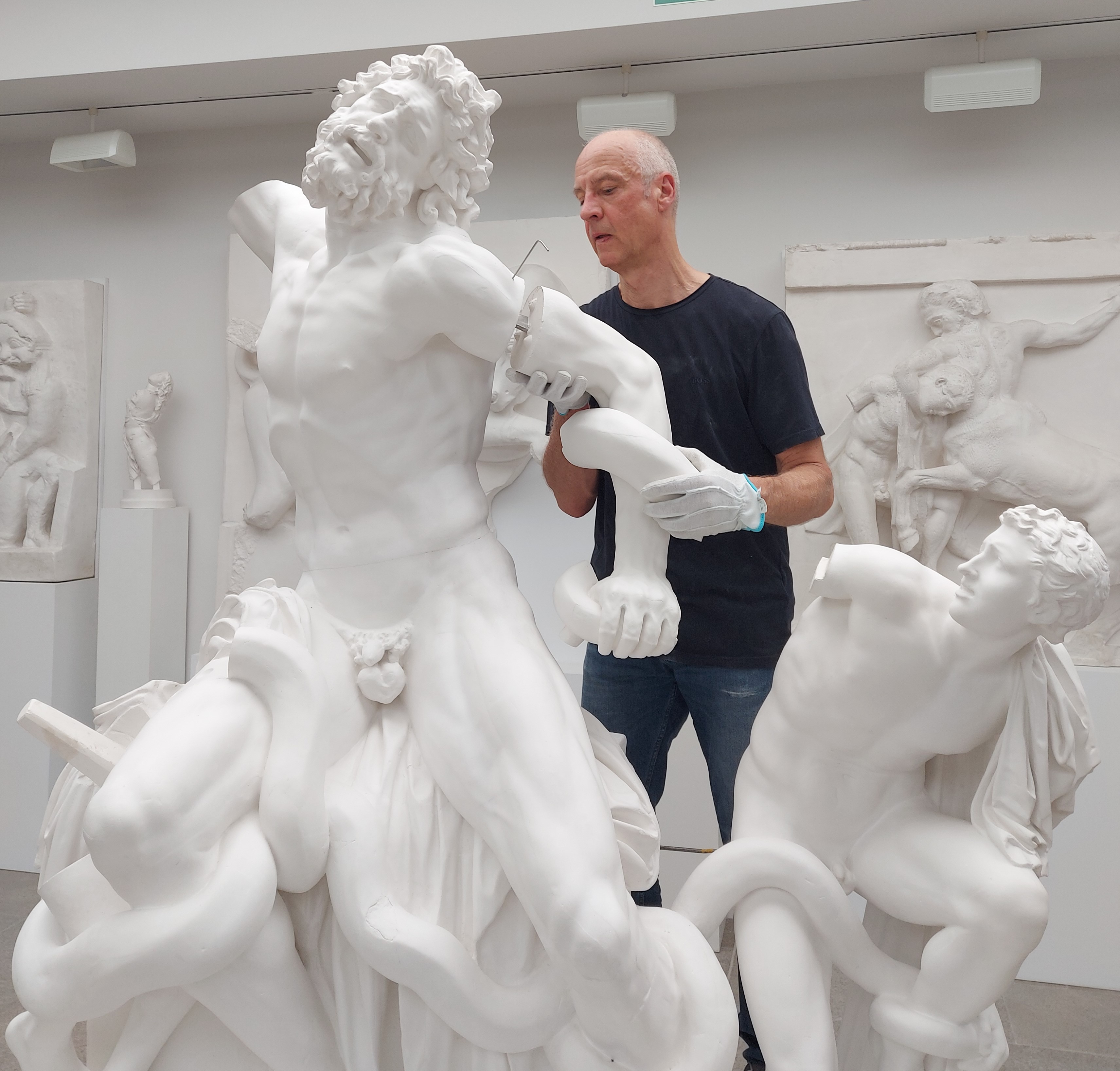 Goethe University’s Sculpture Hall has received a prominent addition: a true-to-original copy of the monumental statue of Laocoön and his sons recently became part of the Collection of Classical Antiquities, bringing to Frankfurt one of the most important masterpieces of the Vatican Museums and certainly one of the most famous and influential ancient sculptures ever. The cast of the original artwork, kept in the Vatican, was custom-made for the Frankfurt collection. Making this unique project possible is a donation from York Thiel and Anni Heyrodt, a donor couple with close ties to classical archaeology in Frankfurt, who have generously supported the collection for years.