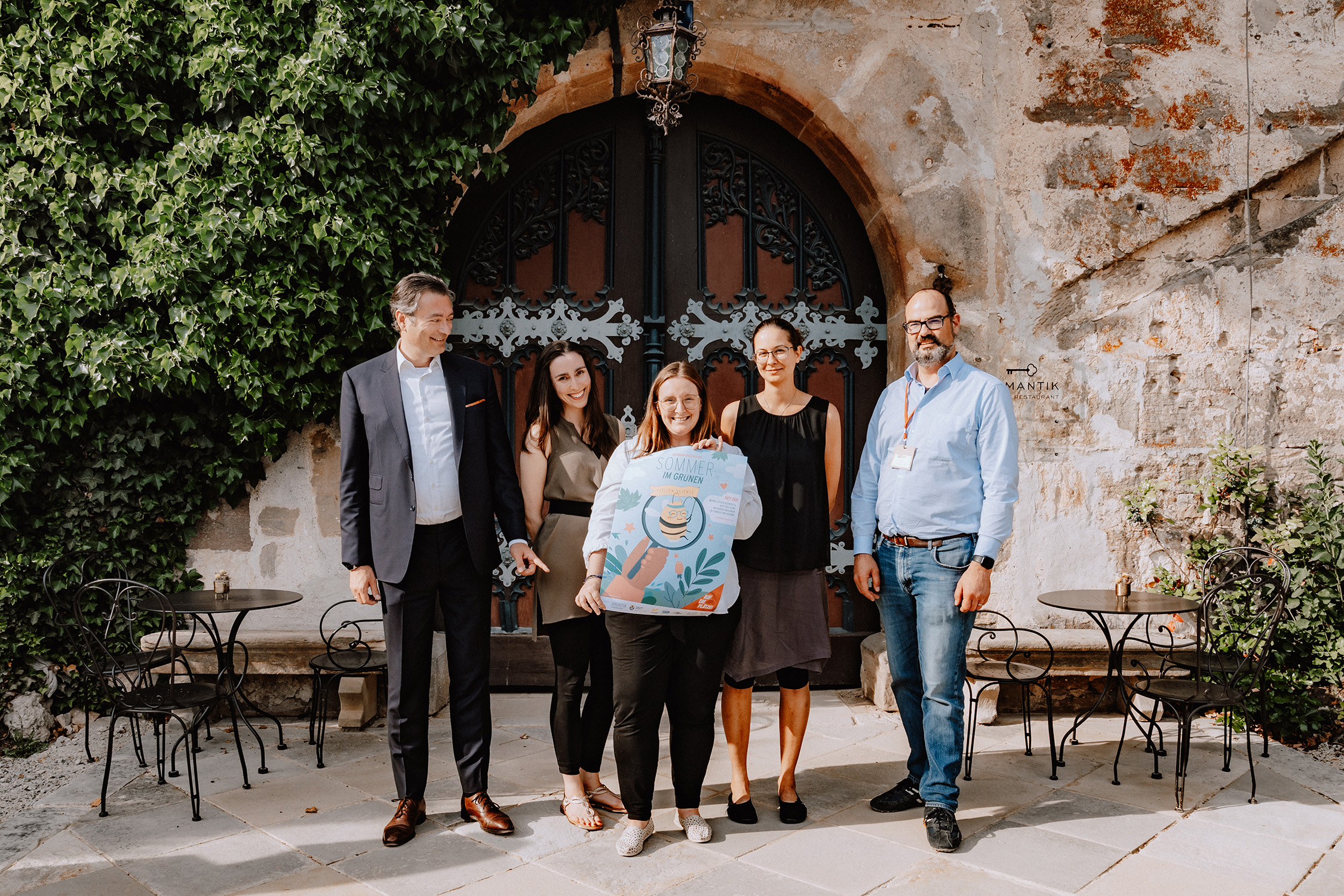 Das Projektteam hat sich vor wenigen Tagen auf Schloss Hohenstein in der Gemeinde Ahorn getroffen, um die Konzeption abzustimmen. Als Versuchsflächen werden im Schlosspark ein Kräuterlabor entstehen, ein Klima-Insektenschloss und ein cooles Feuchtbiotop. Zur Entwicklung der Konzepte werden wissenschaftlich fundierte Methoden gemeinsam mit Entdecker:innen und Forscher:innen der Zivilgesellschaft angewendet. In partizipativen Workshops sollen Experimente zum Wasserhaushalt bei verschiedenen Pflanz- und Bodenkombinationen stattfinden und auch zur Klima-Optimierung in Insektenhotels und der Förderung von Temperaturausgleich und Biodiversität durch passende Oberflächengestaltung geforscht werden. Bei allen Experimenten werden die Bürger:innen auch in die Datenerhebung und -auswertung aktiv einbezogen. Um zu prüfen, ob das Konzept aufgeht, nimmt das Projekt auch unter die Lupe, wie sich durch das gemeinsame Forschen die Achtsamkeit und Selbstwirksamkeit in Bezug auf gemeinsam getragene klimafreundliche Maßnahmen im Coburger Land verändern.