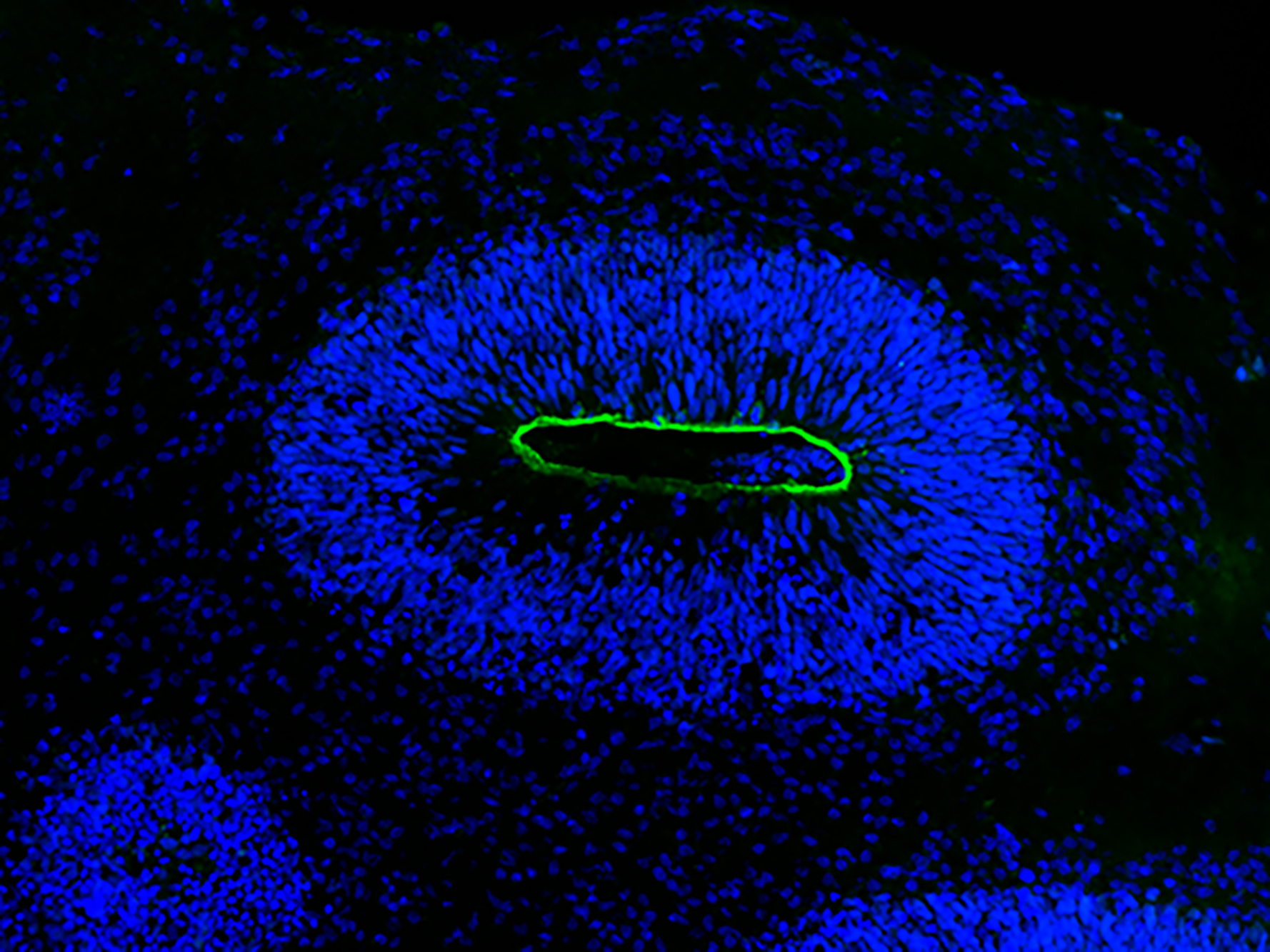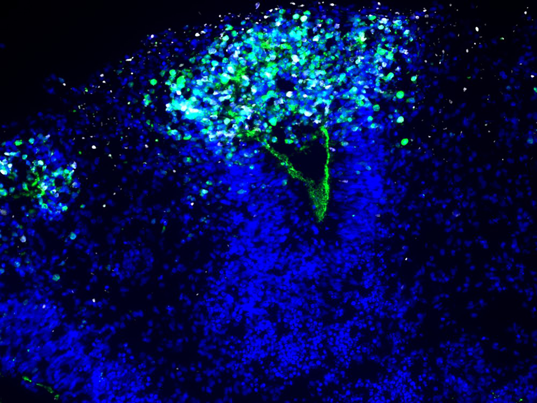 Die Wissenschaftler*innen haben die Organoide zunächst mit HSV-1 infiziert. Während das Virus wütete und die Mini-Hirne zerfielen, färbte das Team Neuronen und Neuroepithel an und machten das Schicksal der Zellen sichtbar. „Da sind wunderschöne Mikroskopie-Bilder entstanden. Sie machen sehr deutlich, was wirklich im Gewebe passiert“, sagt Wyler.