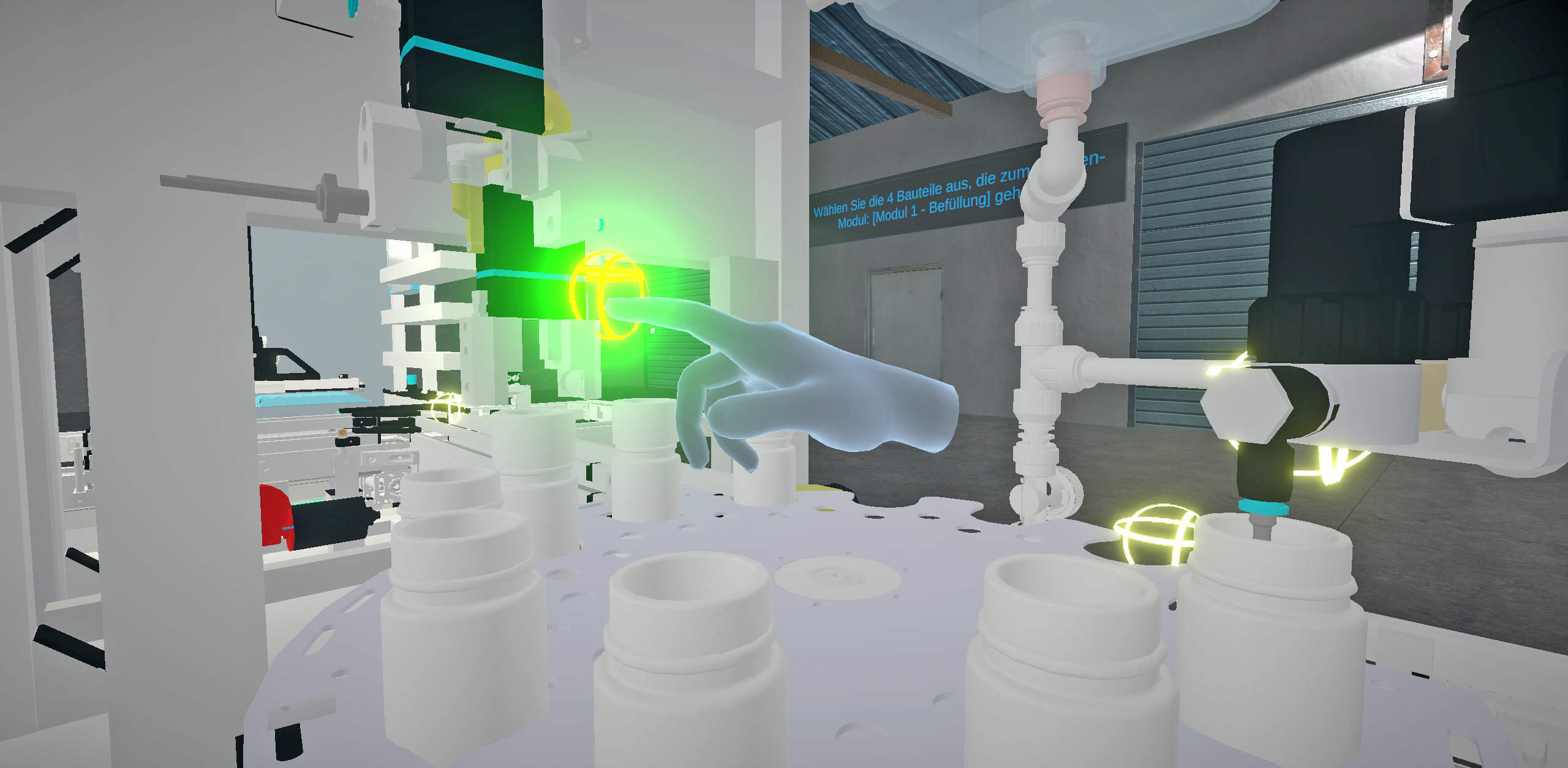 Virtuell ausprobieren, was in der Realität mitunter Konsequenzen nach sich ziehen könnte, können Studierende auch im Anwendungsfall „Automatisierung“. Im konkreten Szenario gilt es, eine Abfüllanlage in Betrieb zu nehmen und zu bedienen. „Damit Studierende mit der Anlage arbeiten können, müssen sie diese mit ihren typischen Eigenheiten kennen, um sowohl eigene Verletzungen als auch Schäden an der Anlage zu vermeiden. Bei komplexeren Anlagen reicht aber eine einmalige Vorführung meist nicht aus“, verdeutlicht Gesamtprojektleiter Prof. Dr.-Ing. Simon Adler, der als Lehrender am Fachbereich Automatisierung und Informatik zudem für diesen Use Case zuständig ist. „Am virtuellen Modell können die Studierenden den richtigen Umgang mit der Anlage erlernen und üben. Der digitale Zwilling ermöglicht ihnen so eine wesentlich bessere Vorbereitung bei der Arbeit mit der echten Anlage.“