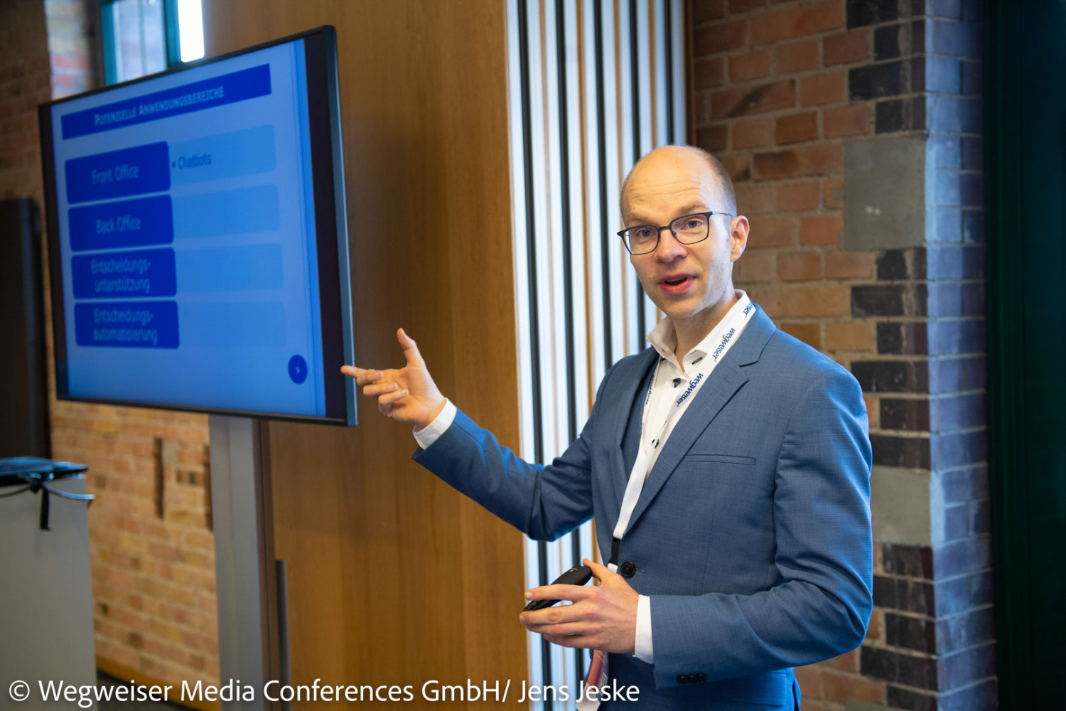 Der mit 5.000 € dotierten ersten Platz gewann Prof. Dr. iur. Christoph Schmidt von der Hochschule für öffentliche Verwaltung und Finanzen in Ludwigsburg mit dem Projekt “Quo vadis, Finanzverwaltung? Potenziale und Herausforderungen eines künftigen KI-Einsatzes”. Dabei geht es um Entscheidungsunterstützung und Automatisierung von Vorgängen in der Steuerverwaltung, sowohl bei der Steuererklärung durch die Bürger:innen als auch bei der Prüfung im Finanzamt. Sein Vortrag stach durch den Kontrast zwischen den Möglichkeiten der Künstlichen Intelligenz und seinen eigenen Erinnerungen an die analoge Praxis als Finanzbeamter in den 2000er Jahren hervor.