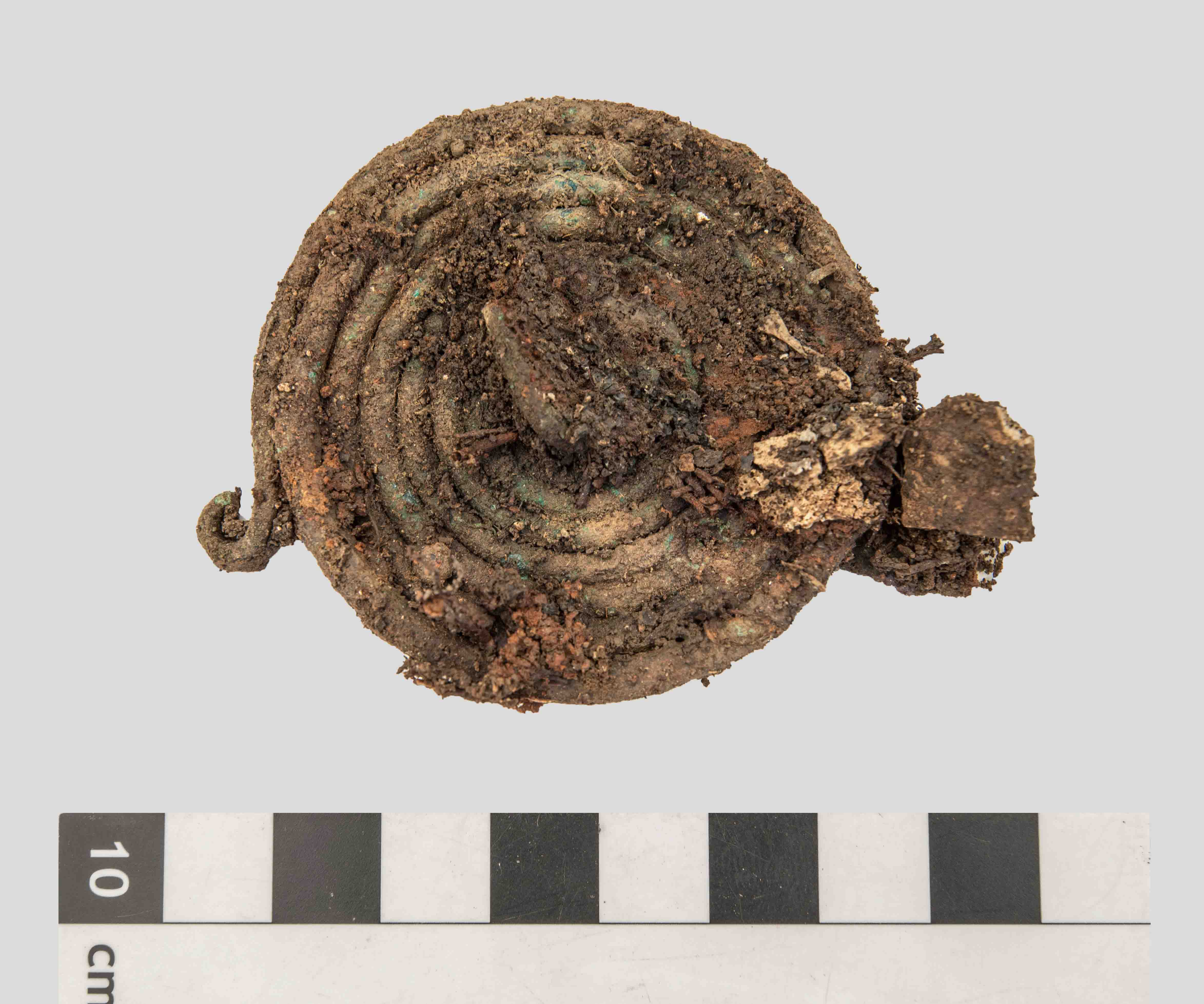 Die wirkliche Sensation wurde erst bei der Bergung der Fundstücke ersichtlich: Sehr akribisch löste man jedes Stück einzeln aus dem dicht aneinanderheftenden Komplex. Dabei wurden an den Unterseiten der Spiralscheiben noch gut erkennbare Abdrücke eines Stoffgewebes sichtbar, die im Zuge eines langwierigen Mineralisierungsprozesses im Boden konserviert wurden. Darüber könnte sich erstmals der Nachweis für ein organisches Behältnis erbringen lassen, in das der Leichenbrand eingefüllt war, als er in den Boden gelegt wurde. Im Gegensatz zu anderen, zeitgleich genutzten Friedhöfen der Hallstatt- und frühen Latènezeit, wurden in Hallstatt bislang Urnen nur selten angetroffen. „Meist finden wir nur ein Häufchen mit dem Knochenklein und etwas Asche, das aber so kompakt liegt, dass wir schon immer kleine Säcke aus Stoff oder Leder vermuten konnten. Nun wurde wohl auch dafür der Beweis erbracht“, freut sich der NHM Wien-Archäologe.
