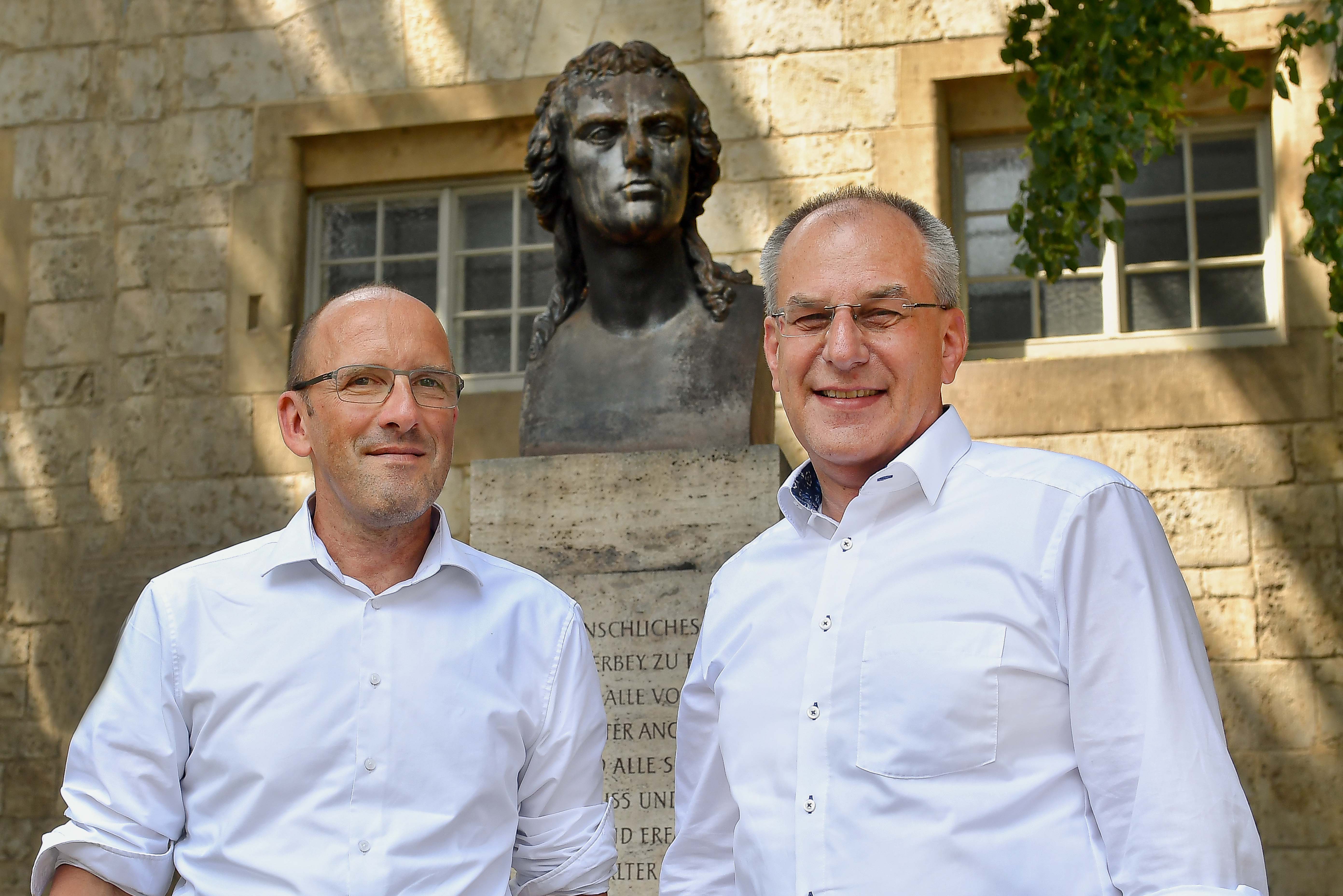 An der Friedrich-Schiller-Universität Jena sind heute zwei Vizepräsidenten einstimmig wiedergewählt worden – oder, wie es im Gesetz heißt, vom Präsidenten aus dem Kreis der Mitglieder der Hochschule im Einvernehmen mit dem Senat bestellt worden. Prof. Dr. Uwe Cantner bleibt Vizepräsident für wissenschaftlichen Nachwuchs, Gleichstellung und Diversität, Prof. Dr. Georg Pohnert amtiert weiterhin als Vizepräsident für Forschung. Ihre dreijährige Amtszeit beginnt am 16. Oktober 2023.