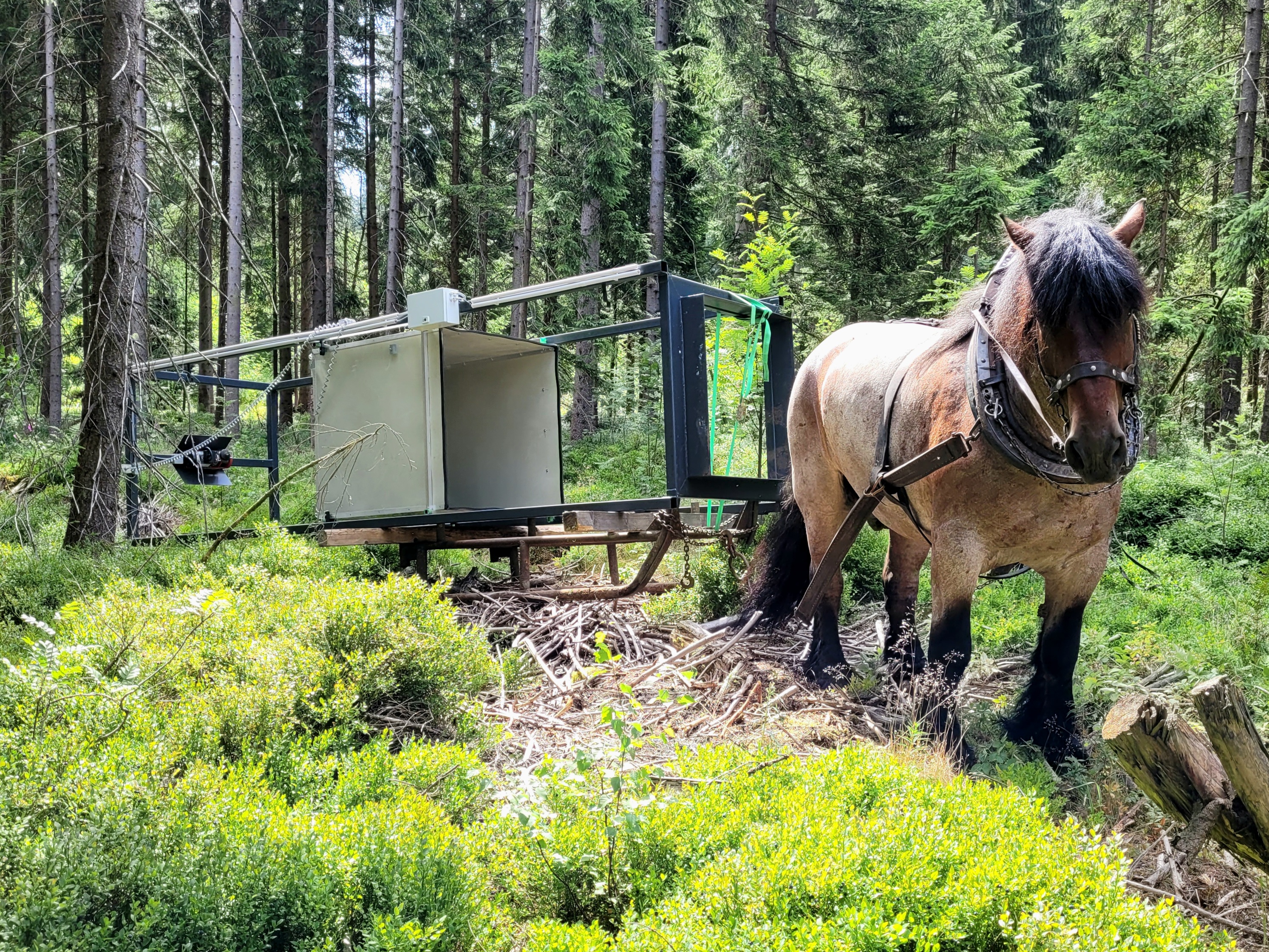 „Das Rückepferd wird bei der Holzernte im Zusammenspiel mit Ernte- und Transportmaschinen wie Harvester und Forwarder eingesetzt. Eine reine Rückung mit Pferden ist auf Grund der heutigen Dimension der Bäume und der geringen Verfügbarkeit an Pferden nicht mehr möglich“, erklärt Dr. Clemens Weiser, Leiter Staatsforstbetrieb im Forstbezirk Eibenstock. Nach dem Transport der Messtürme wird die Installation der notwendigen Stromversorgung in Zusammenarbeit mit Sachsenforst realisiert.