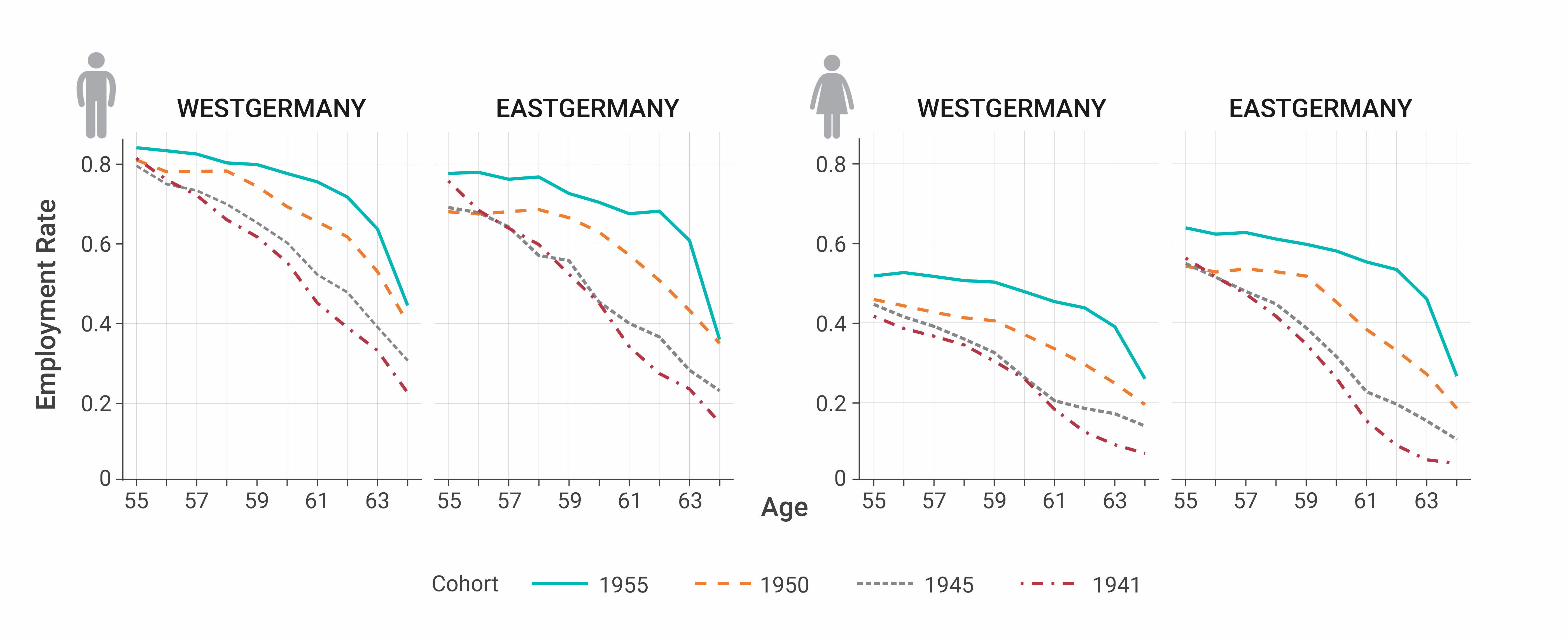 The research team, led by Christian Dudel, Deputy Head of Labor Demography (MPIDR), analyzed data from the German Microcensus. "Since 2002, there have been several policy measures and reforms in Germany aimed at extending work lives. These measures are usually designed for people with a high degree of integration in the labor market, i.e. people with a high income and a long and stable employment record. We asked ourselves whether this can work at all, or whether it has worked so far," says Dr. Dudel, explaining the motivation for the study. The study looked at birth cohorts from 1941 to 1955 and working ages from 55 to 64. The period from 1996 to 2019 was considered in eastern and western Germany. The analysis was carried out according to gender, level of education and professional qualification.